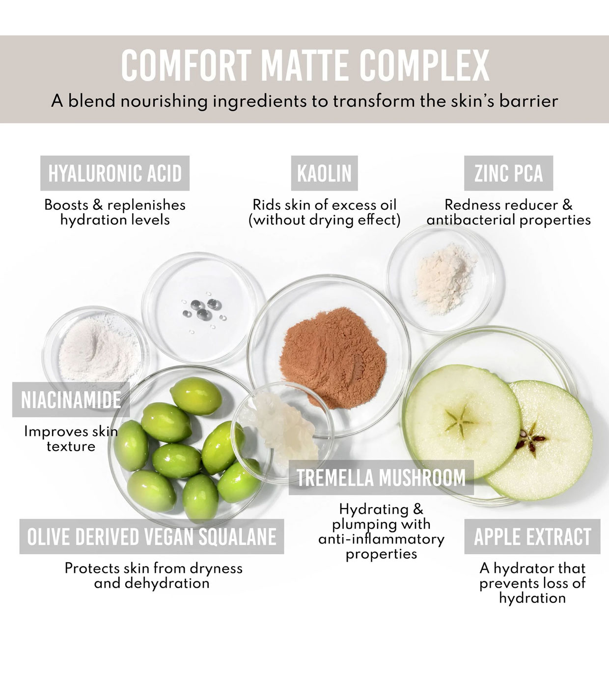 Este sérum matificante de acción múltiple es tu aliado para controlar los brillos, refinar y suavizar tu piel, gracias al Complejo Comfort Matte, una mezcla única de siete poderosos ingredientes equilibrantes.