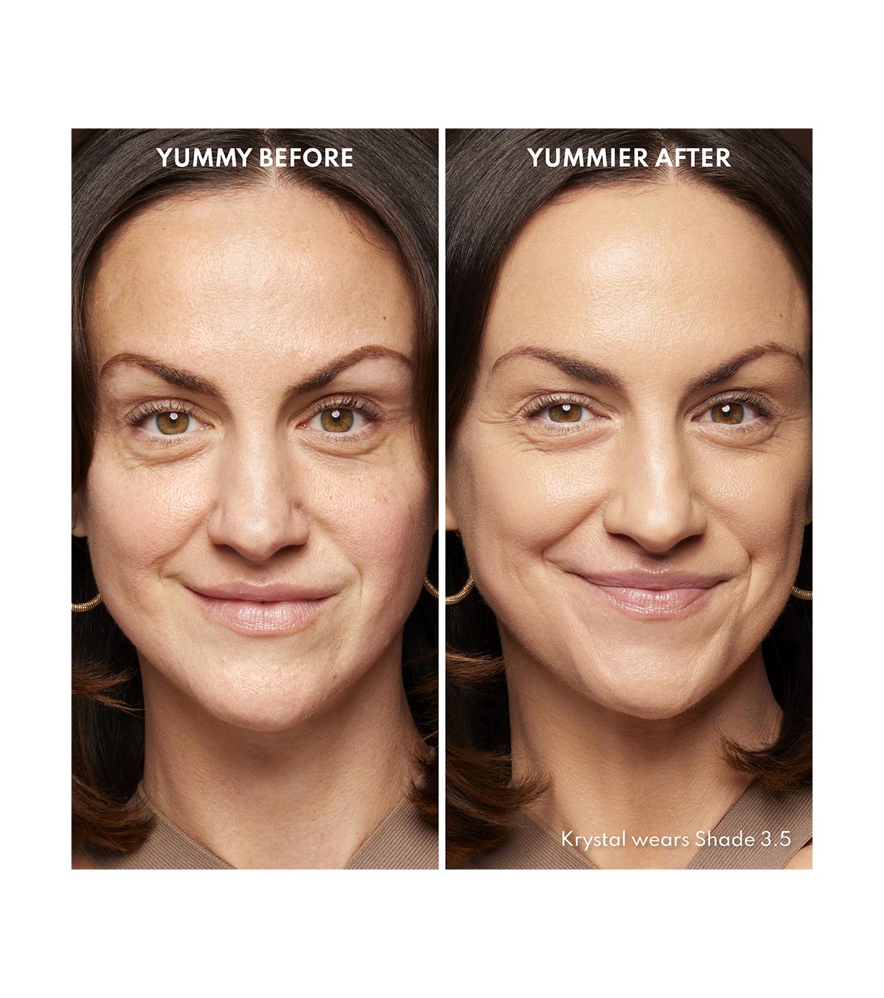 Como prebase: Usando tanto el tono universal, como un tono con color, aplica el bálsamo en polvo Yummy Skin Blurring Balm Powder para preparar tanto la piel del rostro como los párpados.