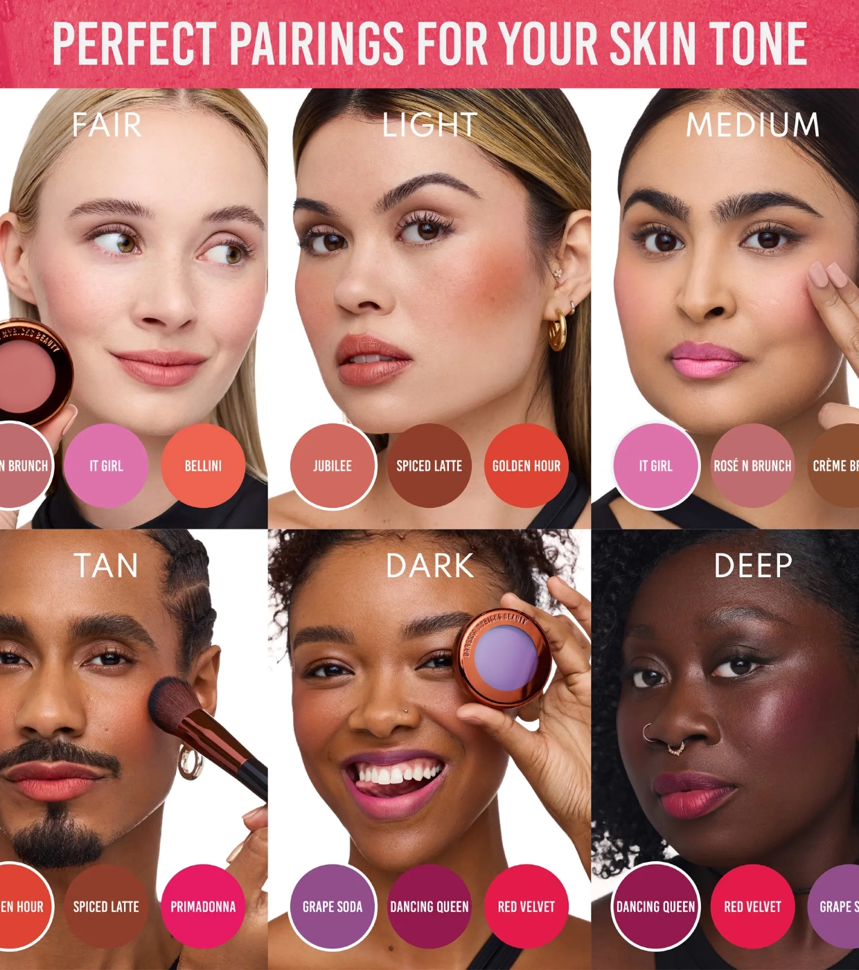 Disponible en varios tonos universales y diseñados para quedar bien en todos los tonos de piel.