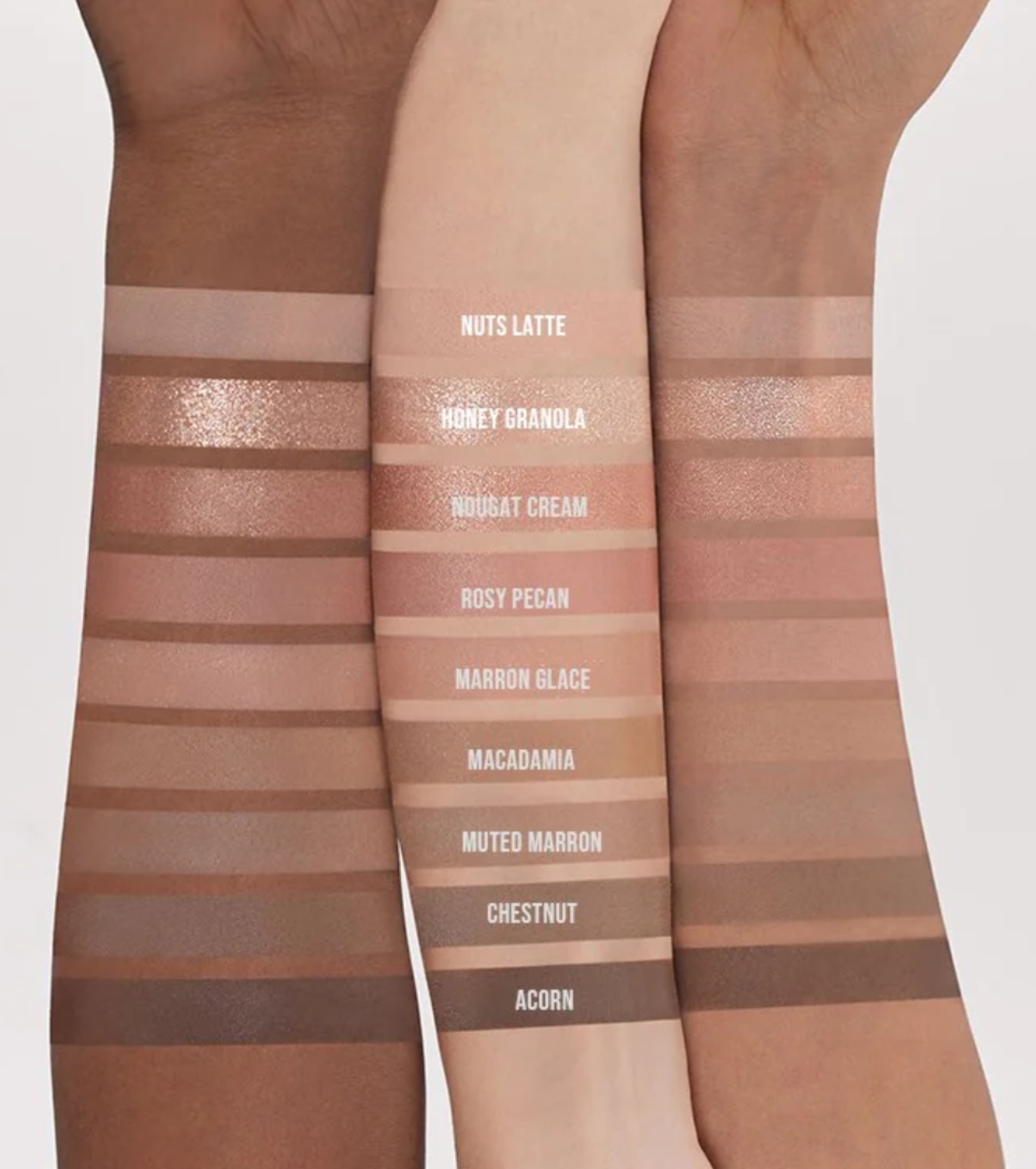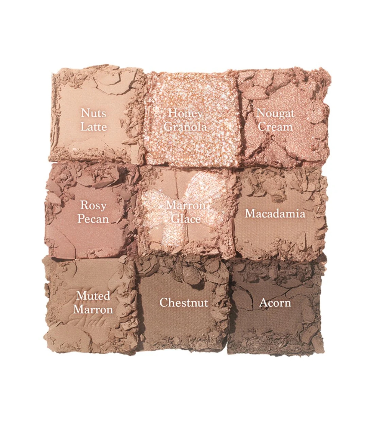 Cada sombra captura la esencia de almendras, avellanas y nueces pecanas, creando una gama perfecta para realzar la mirada con matices cálidos y envolventes.