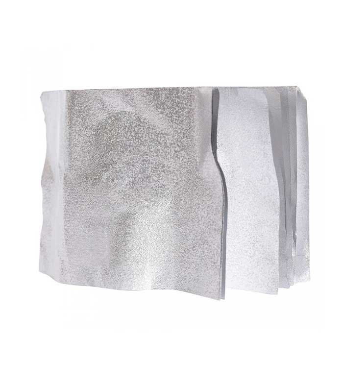- Aplica generosamente Gel iQ Remover sobre la parte interior de algodón de la banda de aluminio, coloca el algodón sobre la uña y sella la lámina de papel de aluminio firmemente alrededor de la uña. Asegúrate de que la superficie de algodón impregnado cubre la uña completamente.