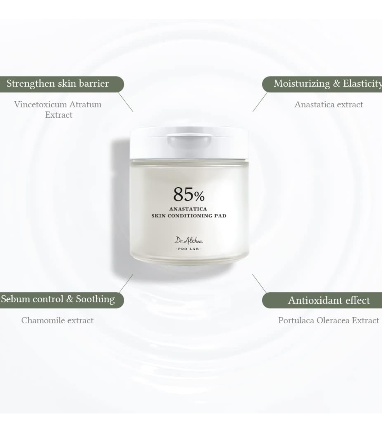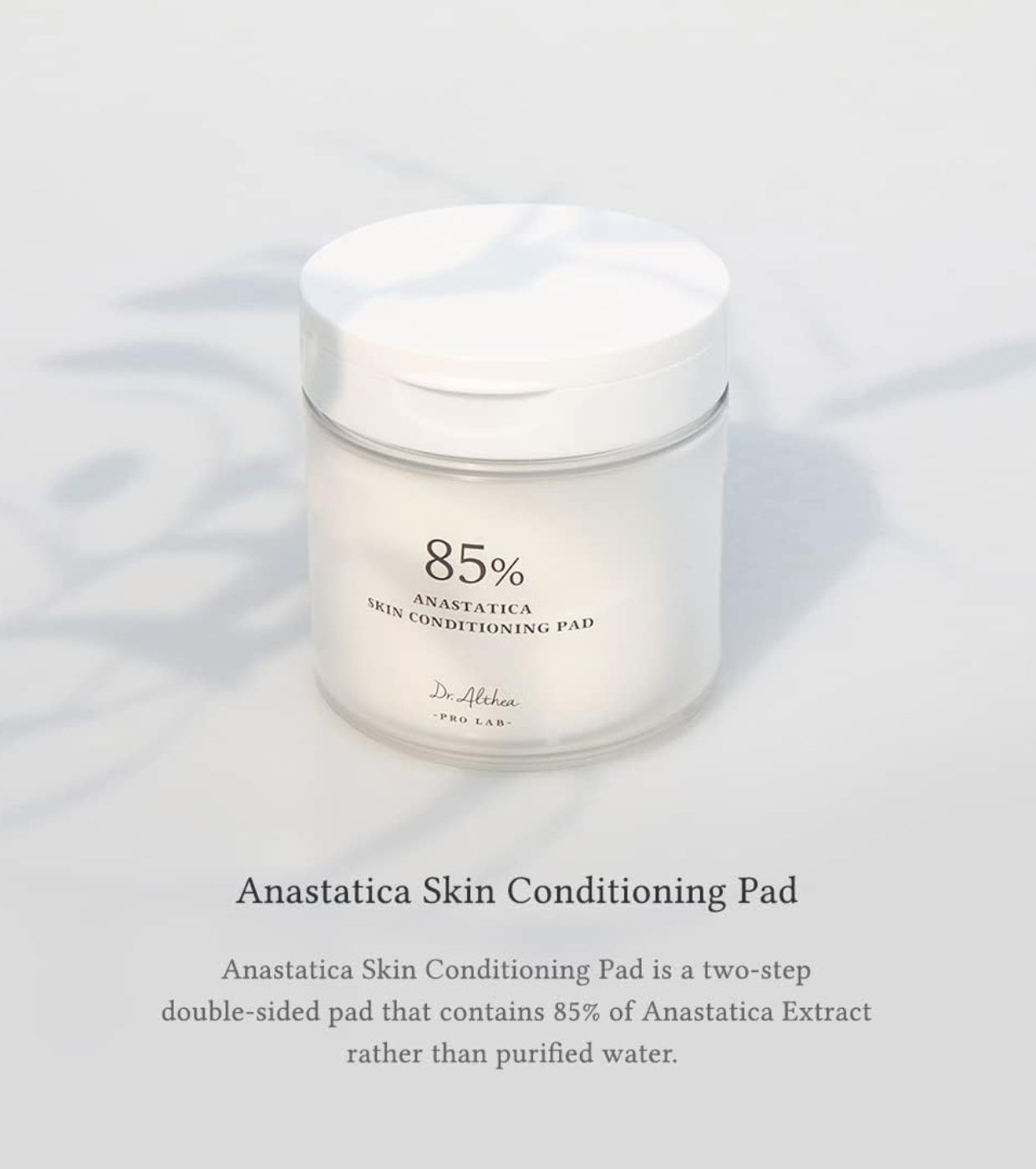 Las almohadillas con extracto de Anastatica de Dr. Althea son unas almohadillas de doble cara que contiene un 85% de extracto de Anastatica en lugar de agua purificada.