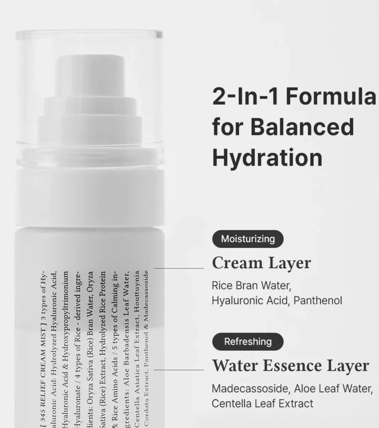 Oryza Sativa (Rice) Bran Water, Glycerin, Triethylhexanoin, Water, Hydrogenated Poly(C6-14 Olefin), Butylene Glycol, Methylpropanediol, Pentylene Glycol, 1,2-Hexanediol, Panthenol, Streptococcus Thermophilus Ferment, Betaine, Trilaureth-4 Phosphate, Ethylhexylglycerin, Polyquaternium-51, Sodium Phytate, Citric Acid, Pyrus Malus (Apple) Juice, Oryza Sativa (Rice) Extract, Sea Salt, Cynanchum Atratum Extract, Tocopherol, Aspergillus Ferment, Althaea Rosea Flower Extract, Hydrolyzed Hyaluronic Acid, Madecassoside, Hydroxypropyltrimonium Hyaluronate, Aloe Barbadensis Leaf Water, Centella Asiatica Leaf Extract, Avena Sativa (Oat) Kernel Extract, Lactobacillus Ferment, Houttuynia Cordata Extract, Hyaluronic Acid, Silanetriol, Bifida Ferment Extract, Hydrolyzed Rice Protein, Rice Amino Acids