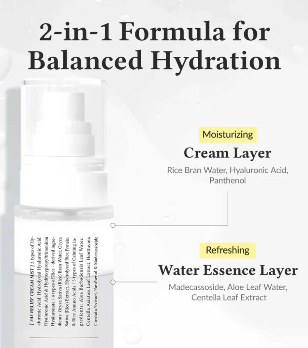 Oryza Sativa (Rice) Bran Water, Glycerin, Triethylhexanoin, Water, Hydrogenated Poly(C6-14 Olefin), Butylene Glycol, Methylpropanediol, Pentylene Glycol, 1,2-Hexanediol, Panthenol, Streptococcus Thermophilus Ferment, Betaine, Trilaureth-4 Phosphate, Ethylhexylglycerin, Polyquaternium-51, Sodium Phytate, Citric Acid, Pyrus Malus (Apple) Juice, Oryza Sativa (Rice) Extract, Sea Salt, Cynanchum Atratum Extract, Tocopherol, Aspergillus Ferment, Althaea Rosea Flower Extract, Hydrolyzed Hyaluronic Acid, Madecassoside, Hydroxypropyltrimonium Hyaluronate, Aloe Barbadensis Leaf Water, Centella Asiatica Leaf Extract, Avena Sativa (Oat) Kernel Extract, Lactobacillus Ferment, Houttuynia Cordata Extract, Hyaluronic Acid, Silanetriol, Bifida Ferment Extract, Hydrolyzed Rice Protein, Rice Amino Acids