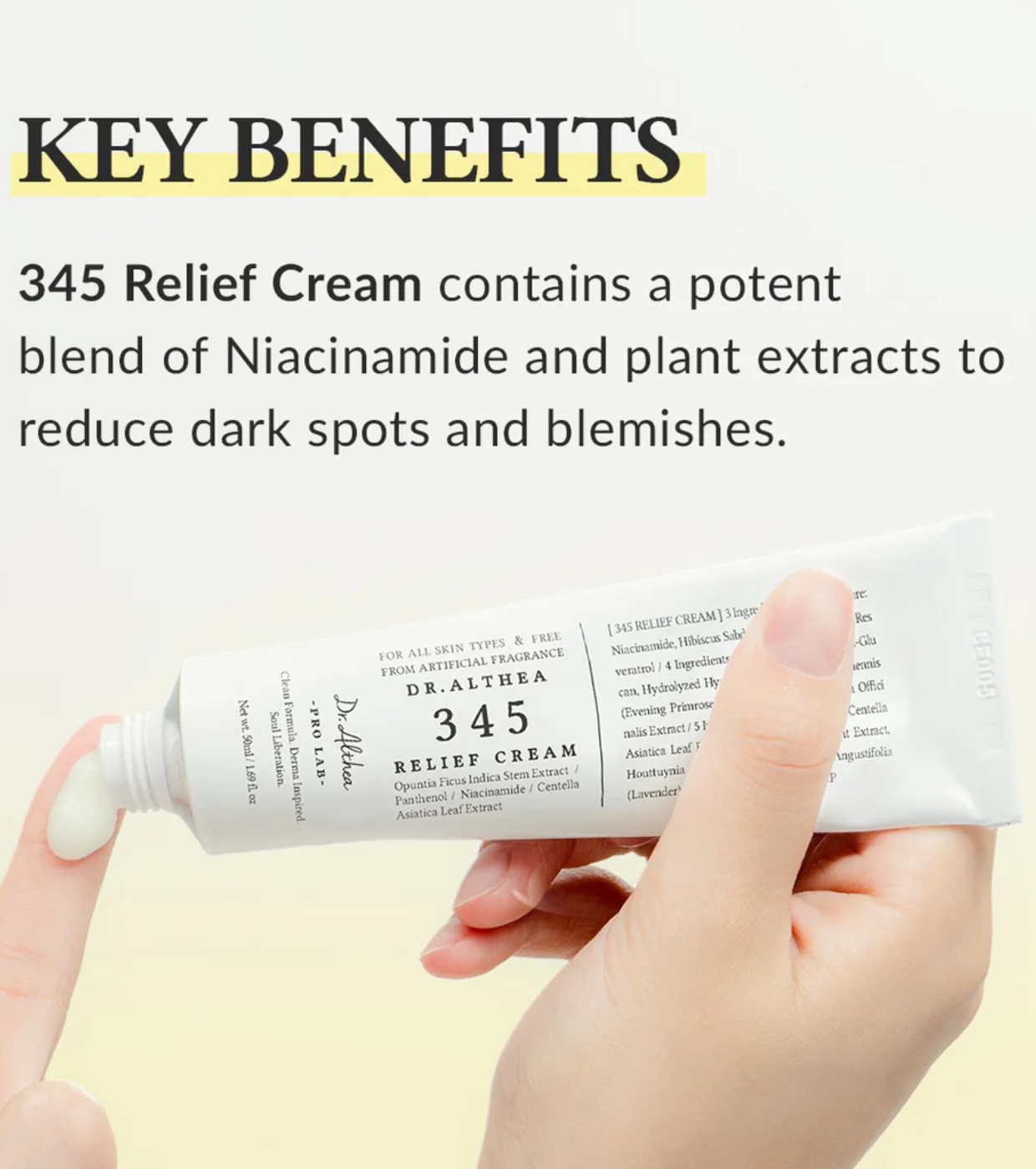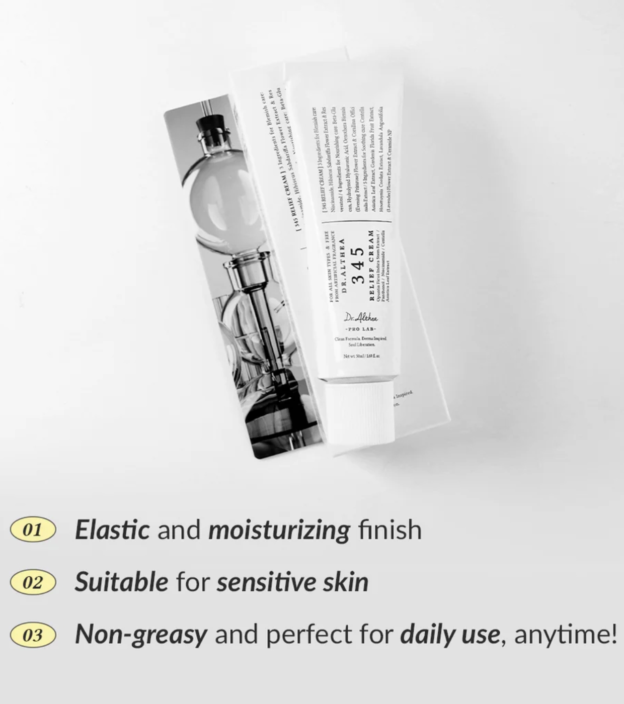 Dr. Althea 345 Relief Cream es una solución completa para pieles que necesitan reparación, calma e hidratación sin irritación, ideal para acompañar procesos de recuperación tras el acné o sensibilidad extrema.