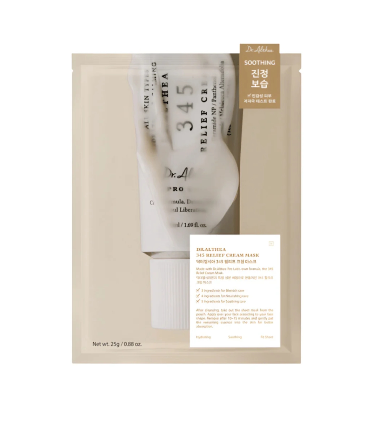 La mascarilla facial 345 Relief Cream Mask de Dr. Althea es una mascarilla facial calmante intensiva especialmente formulada para pieles sensibles, con tendencia acneica o irritadas.