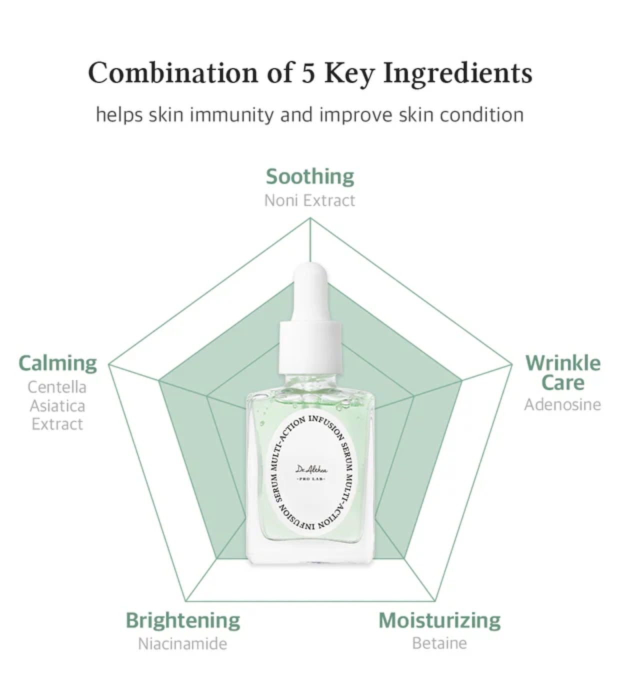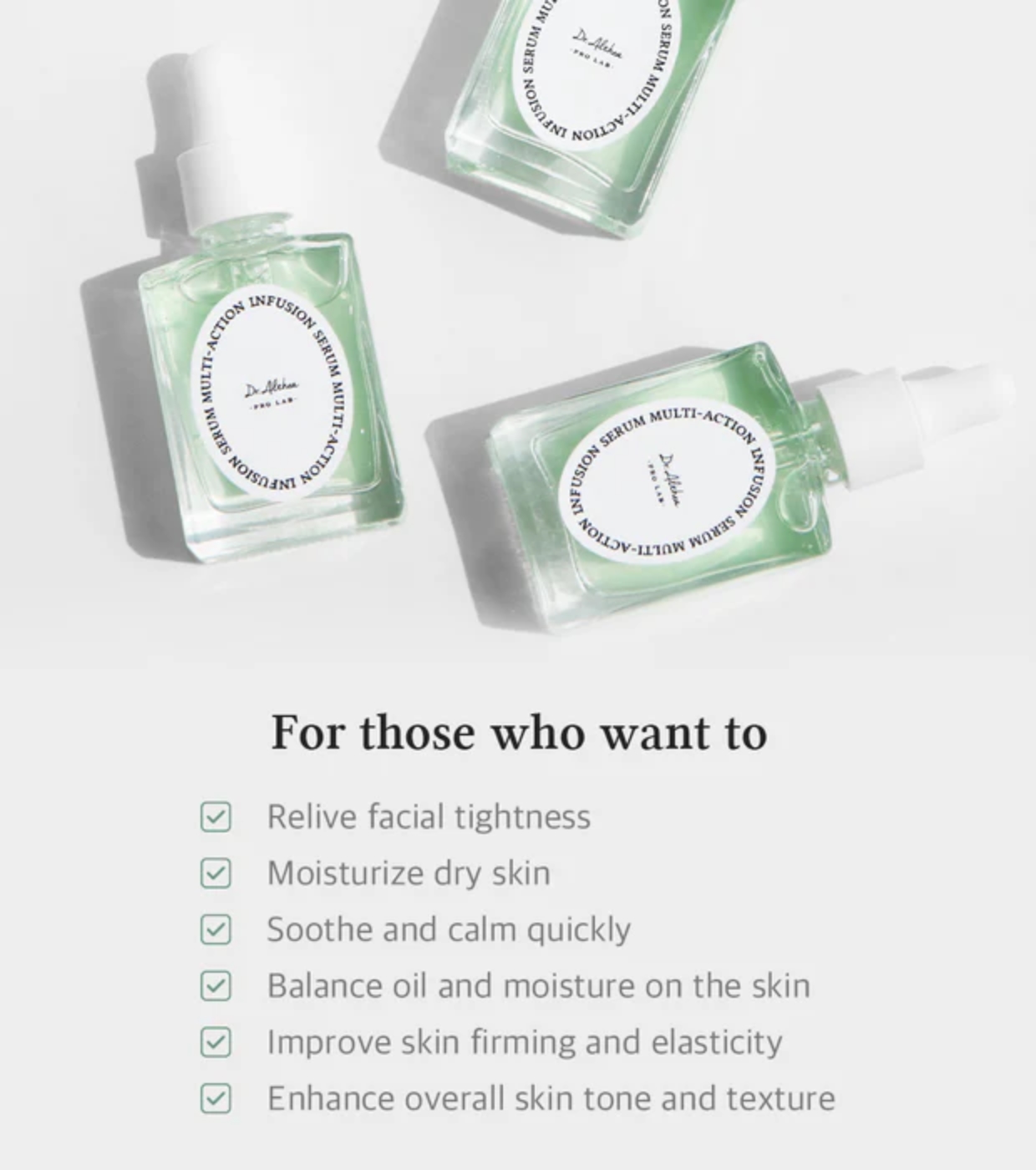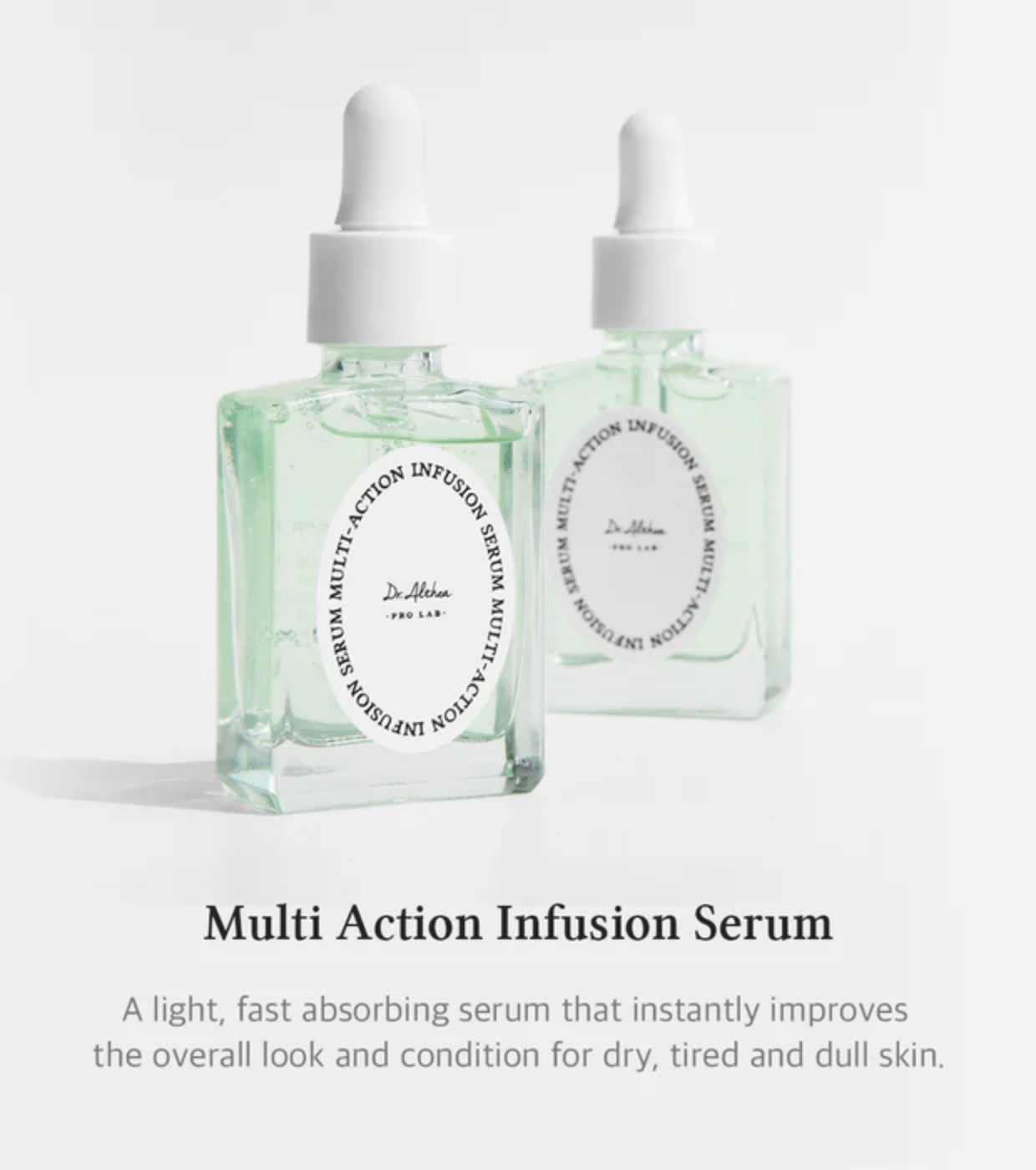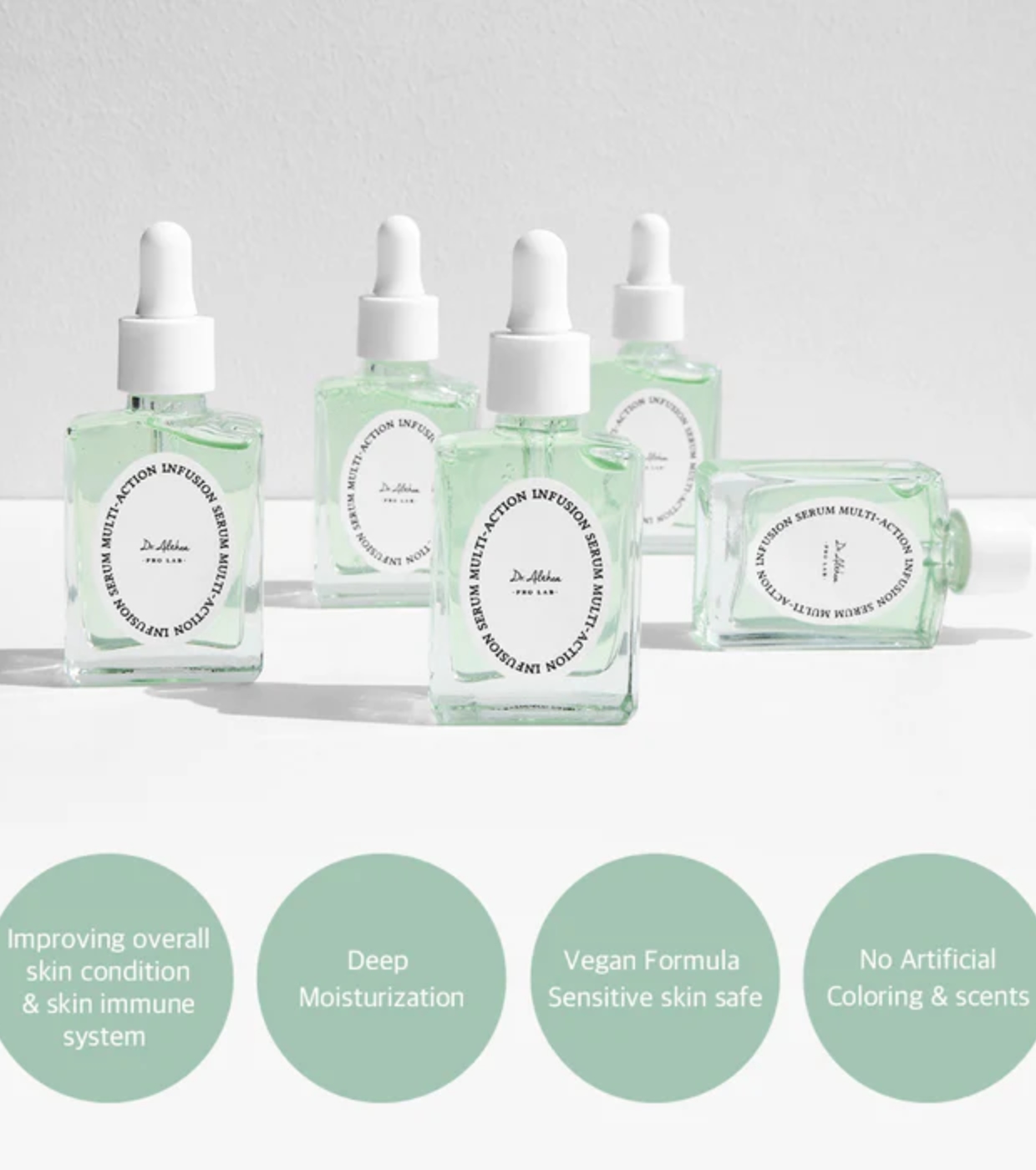 El Multi-Action Infusion Serum de Dr. Althea es un sérum ligero, vegano y de rápida absorción que combate la piel seca, opaca o fatigada con una fórmula avanzada que fortalece la barrera cutánea y aporta hidratación en profundidad.