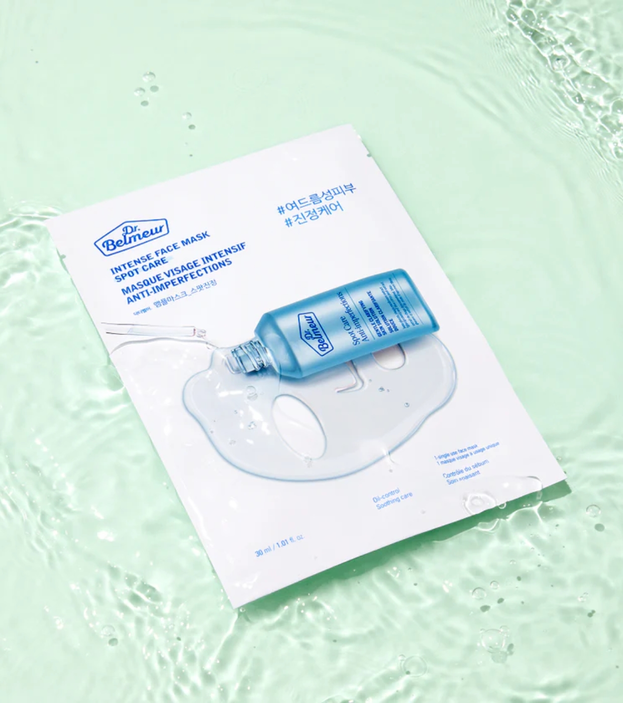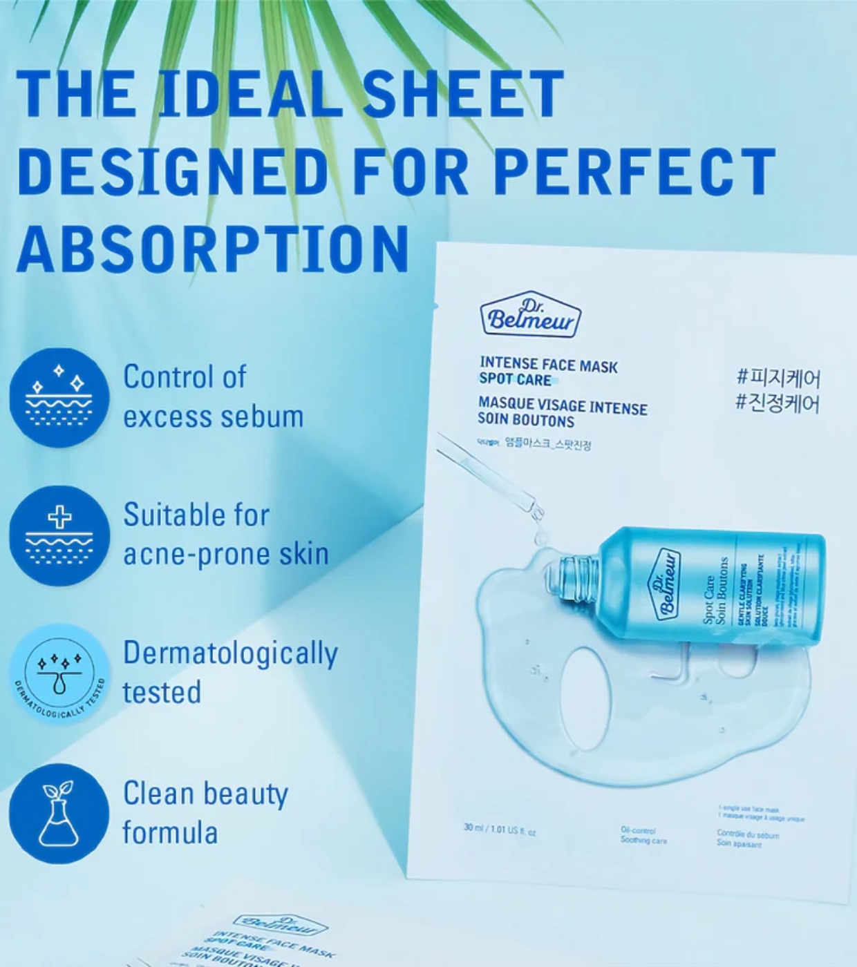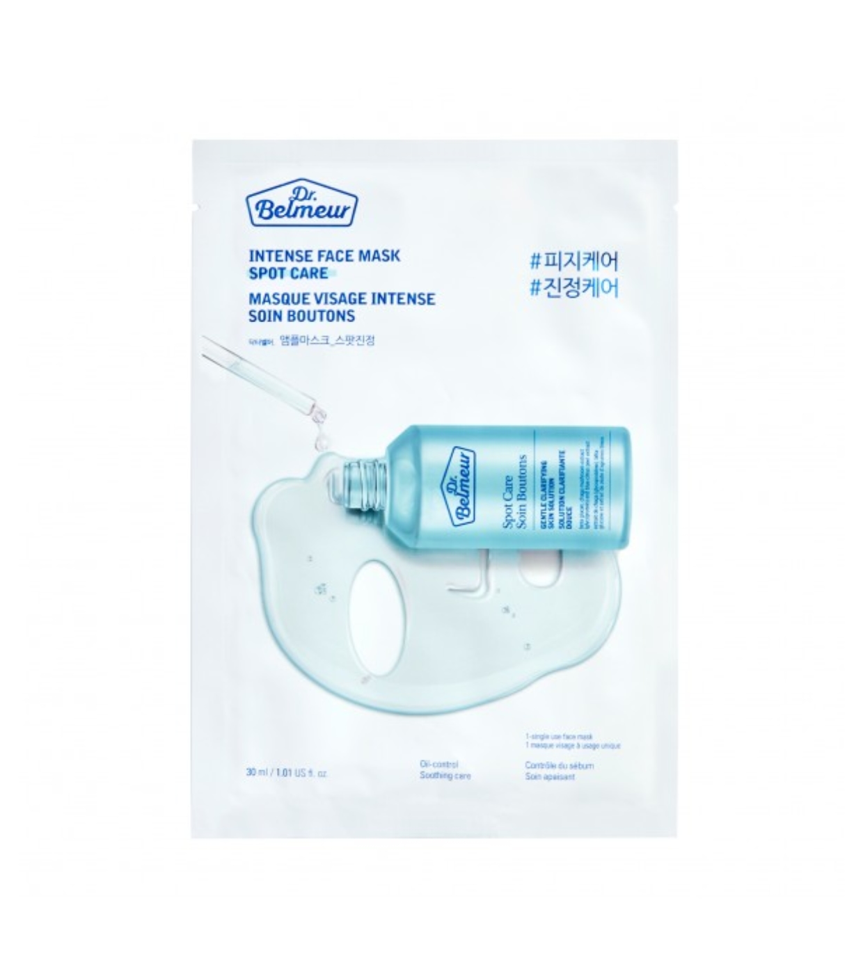 La Spot Care Intense Face Mask de Dr. Belmeur es una sheet mask de tratamiento intensivo diseñada para pieles grasas, irritadas o con imperfecciones.