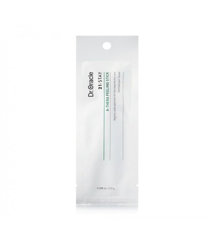El bastoncillo exfoliante 21 Stay A-Thera Peeling Stick de Dr. Oracle está impregnado con una fórmula exfoliante AHA y BHA ideal para hacer un peeling localizado y tratar granitos.