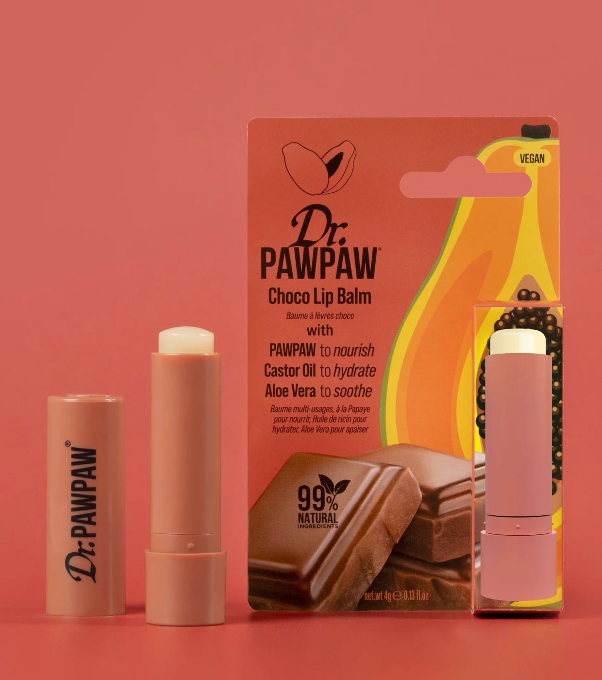 Disfruta de un cuidado labial exquisito con el bálsamo labial de Chocolate Dr. PAWPAW, un bálsamo milagroso vegano y 99 % natural, formulado para hidratar profundamente y dejar los labios suaves, nutridos y con un delicioso aroma a chocolate.