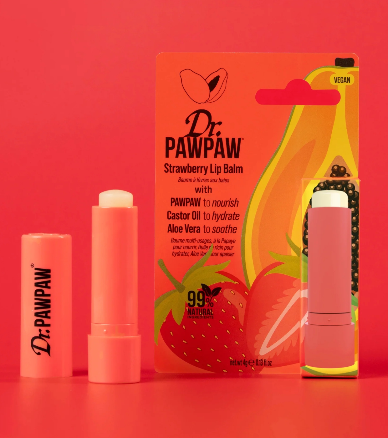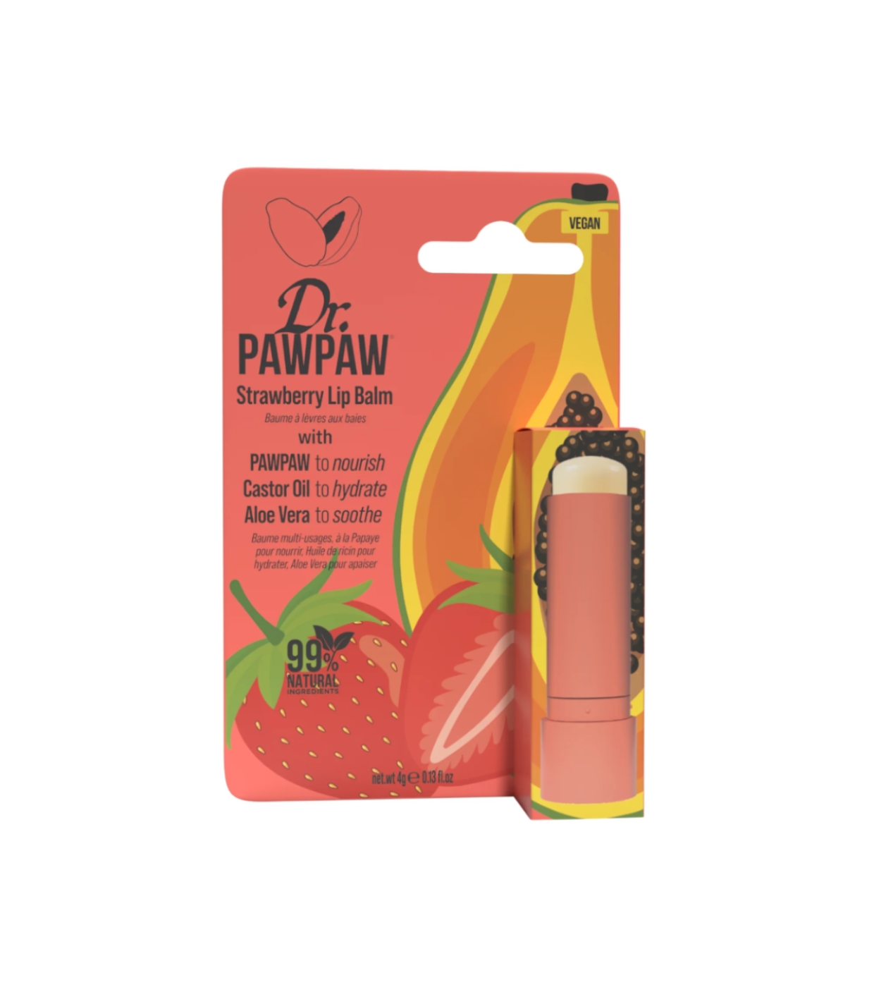 El bálsamo labial en barra Strawberry de Dr. PAWPAW es mucho más que un hidratante: es un bálsamo milagroso vegano y 99 % natural, perfecto para nutrir, suavizar y proteger tus labios con un delicioso aroma a fresa jugosa.