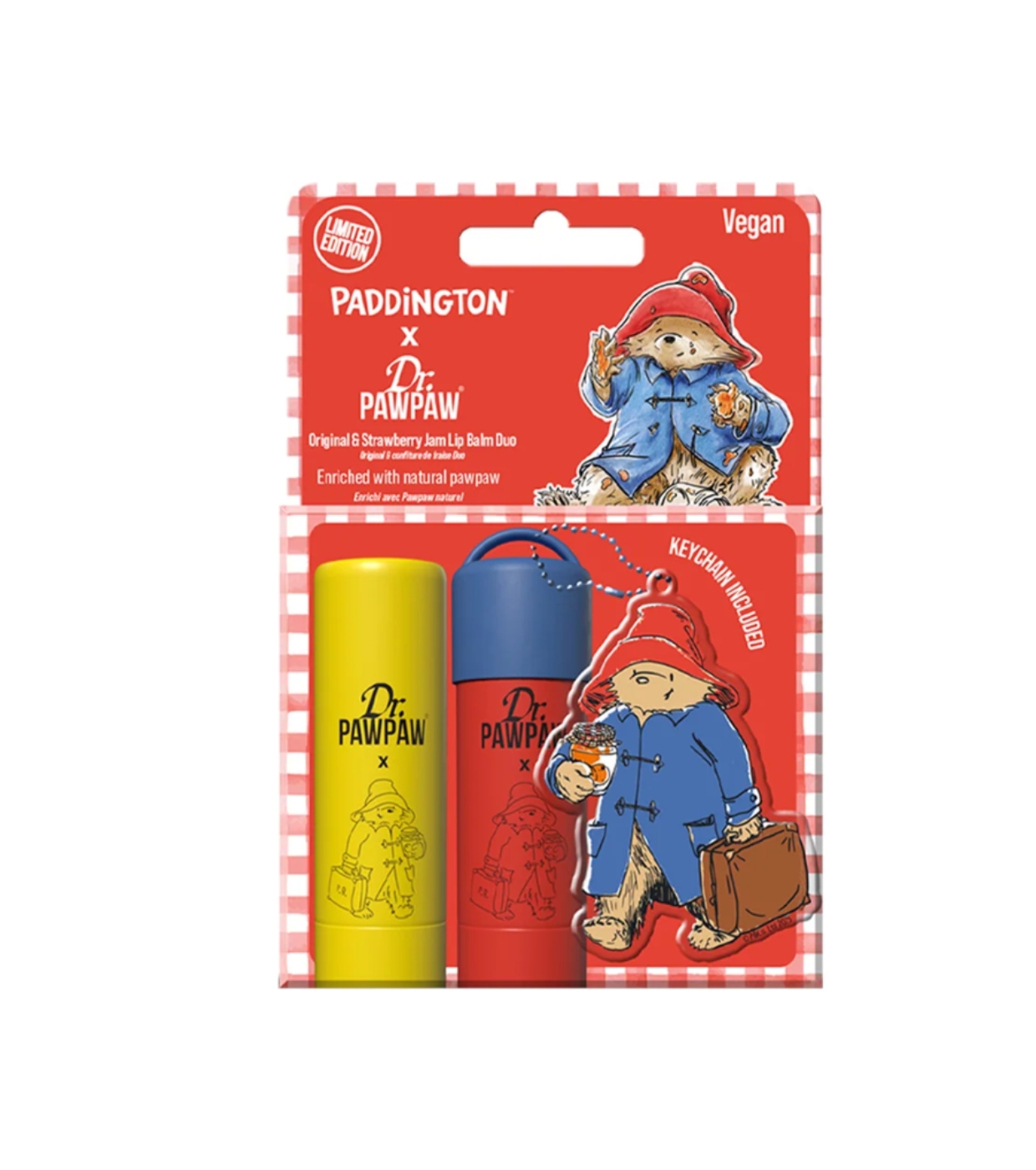 El Dúo de Bálsamos Labiales Dr.PAWPAW inspirado en Paddington™ Fresa combina el icónico bálsamo Original 100% natural con el bálsamo labial Orange, creando la pareja perfecta para mantener los labios nutridos, suaves y deliciosamente perfumados.