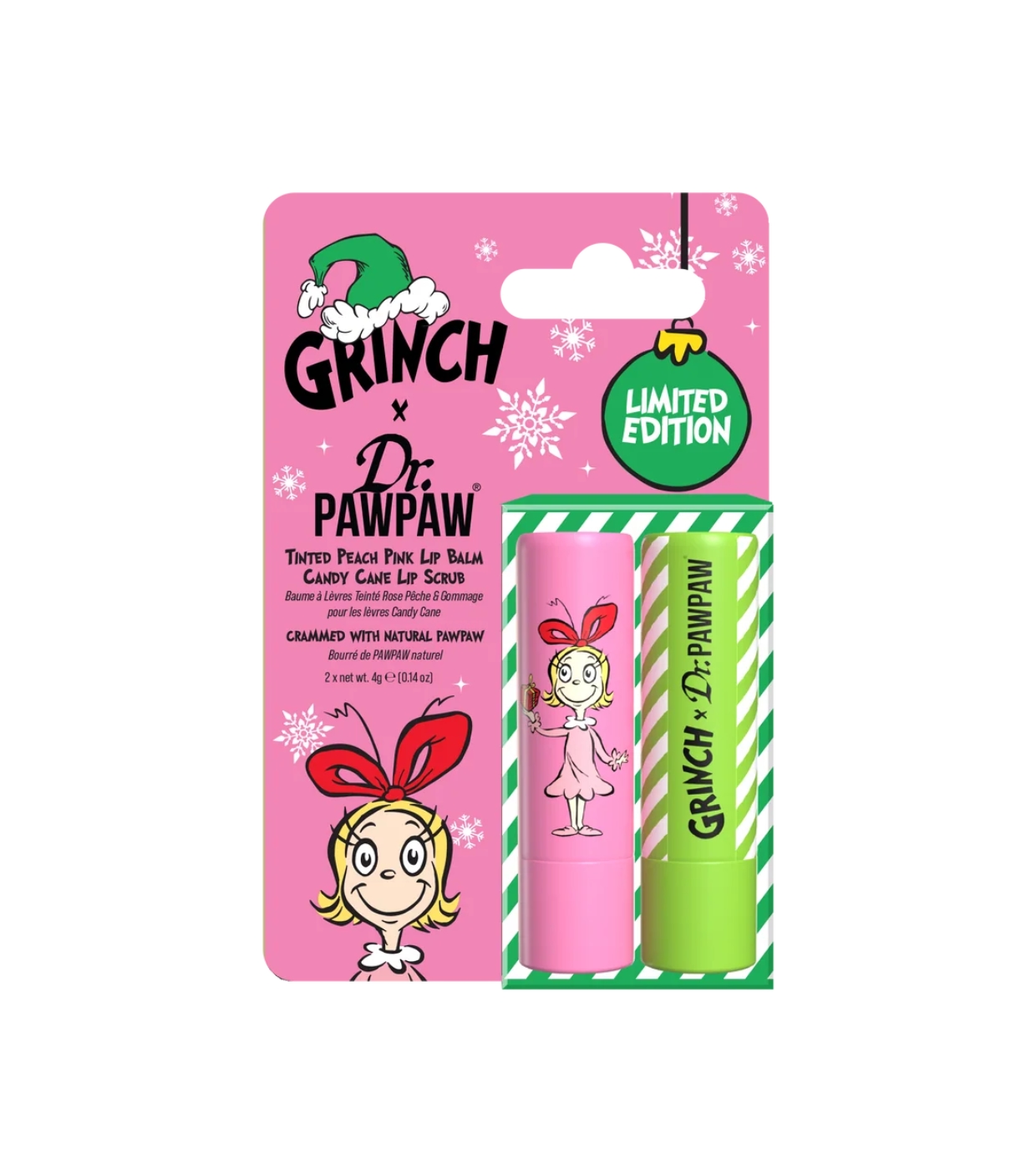 Whoville presenta el dúo más travieso y delicioso de la temporada: el Grinch x Dr.PAWPAW Whoville Duo, un set imprescindible que combina color, exfoliación e hidratación para unos labios suaves y llenos de vida.