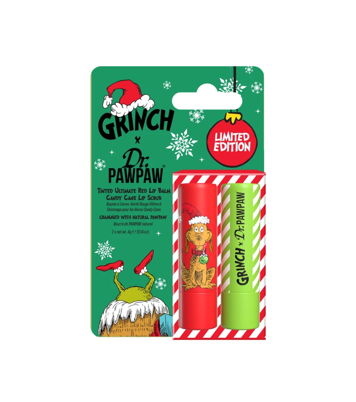 Whoville presenta el dúo más travieso e imprescindible de la temporada: el Grinch x Dr.PAWPAW Whoville Tinted Duo, un set festivo que combina exfoliación, nutrición y un toque de color para unos labios suaves, hidratados y listos para cualquier celebración.
