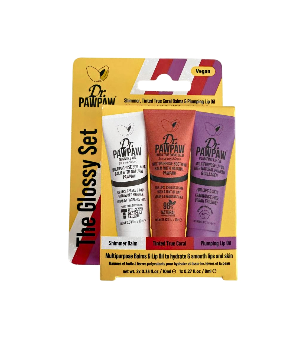 Añade un toque de brillo y color a tu rutina con el The Glossy Set de Dr.PAWPAW, una colección de bálsamos y aceite labial diseñada para hidratar, suavizar y realzar labios y piel con un acabado luminoso y saludable.