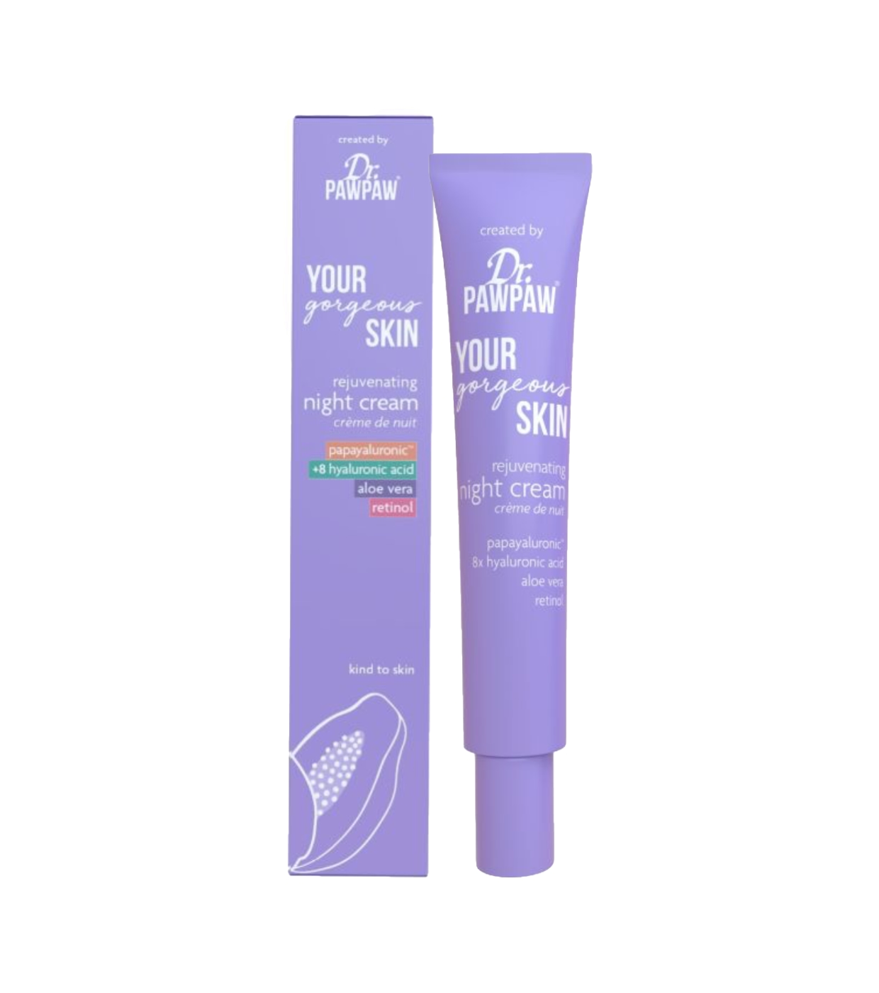 La crema de noche rejuvenecedora de Dr. Paw Paw es un tratamiento nocturno vegano y antiedad que combina poderosos ingredientes para hidratar, calmar y rejuvenecer la piel mientras duermes.