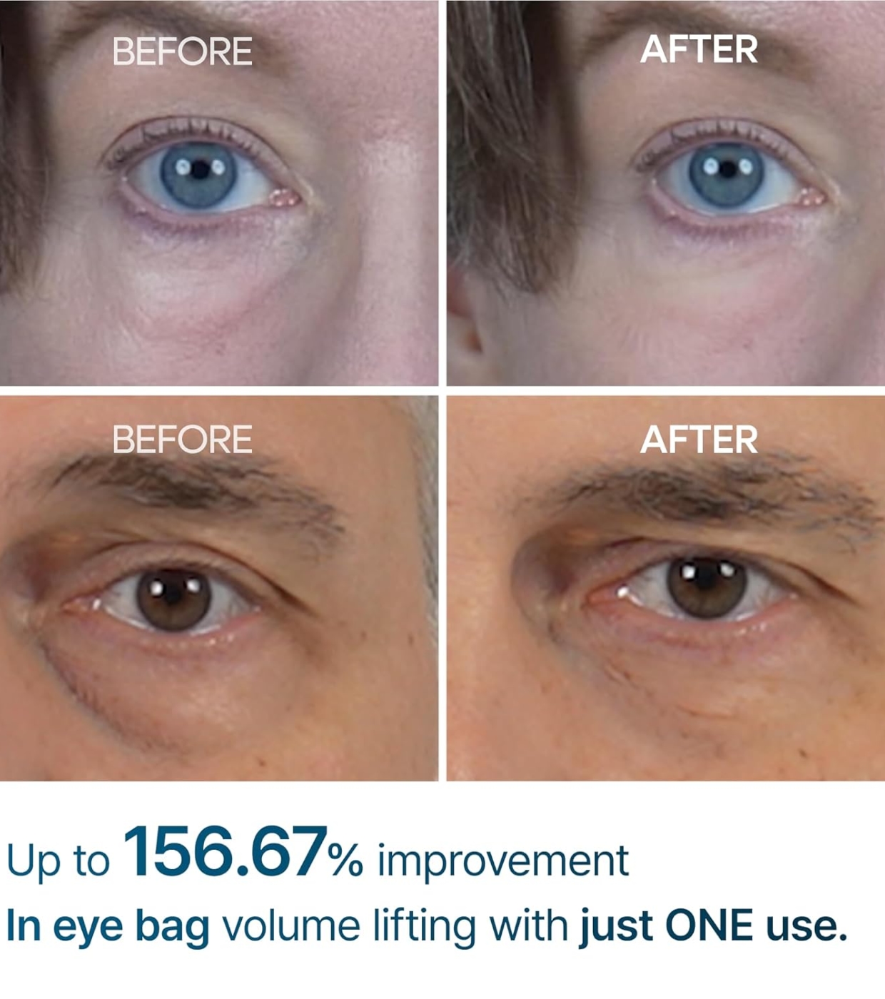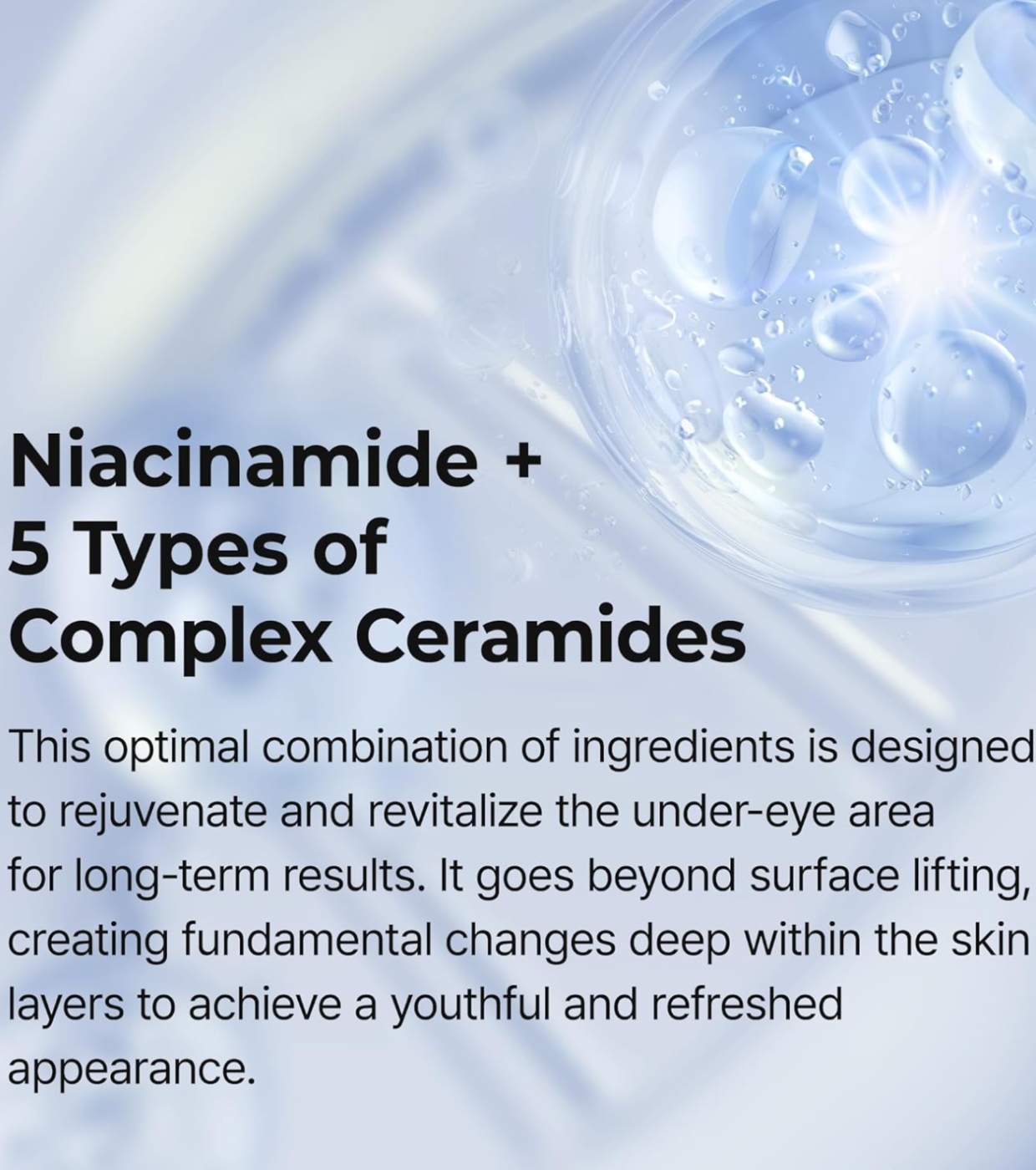 Esta crema reduce significativamente las bolsas debajo de los ojos, mejora las ojeras y refuerza la barrera de la piel para una apariencia más suave y juvenil.