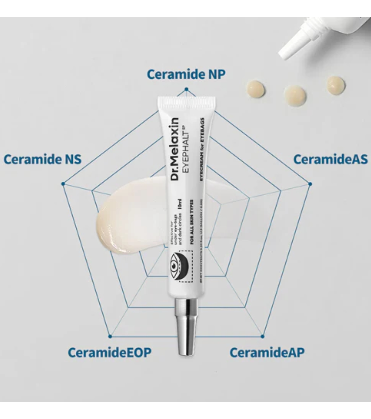 Esta crema para las ojeras Eyephalt de Dr.Melaxin es un producto 3 en 1 que levanta las bolsas debajo de los ojos, ilumina y fortalece la barrera.