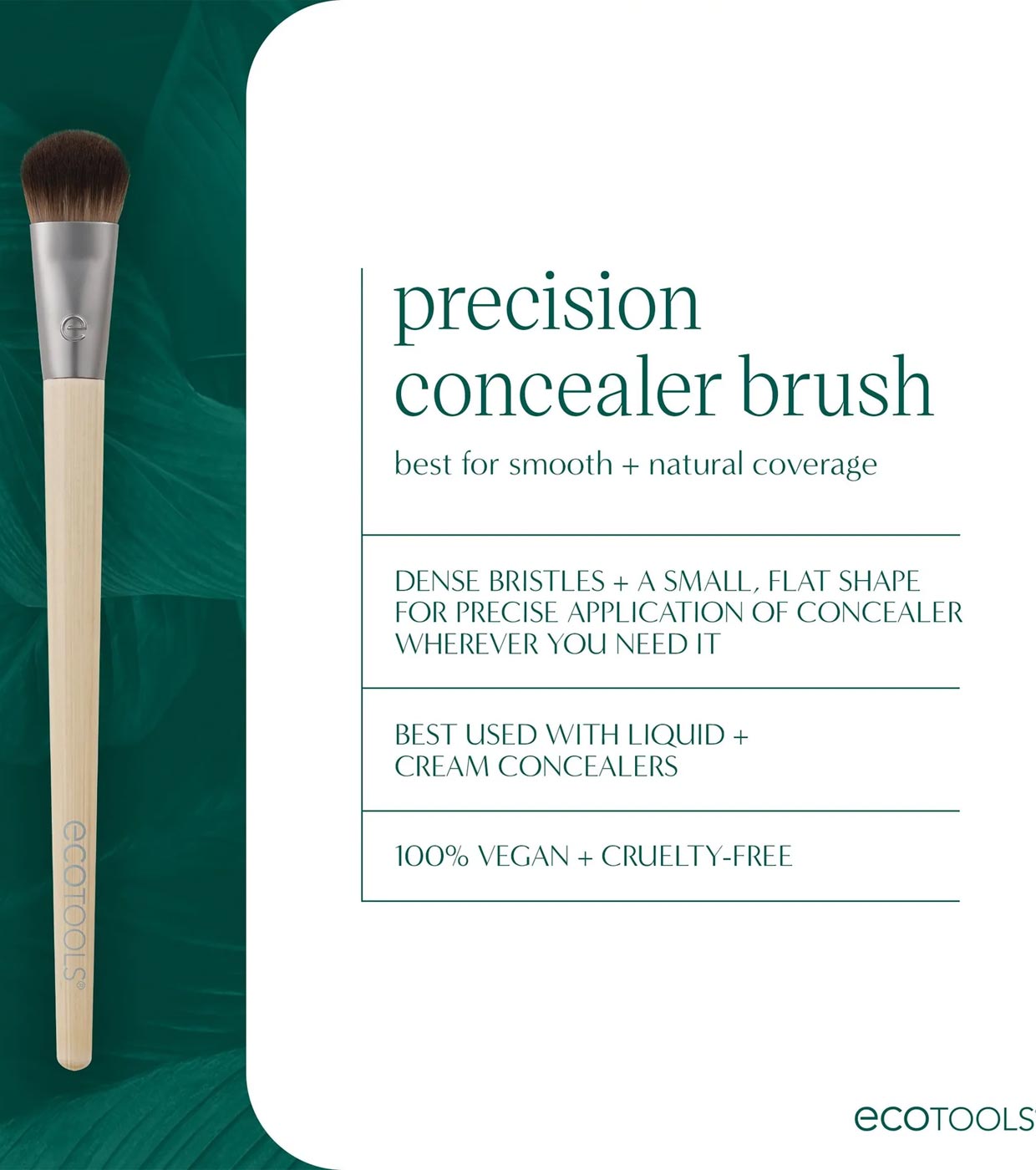 La brocha para corrector EcoTools Precision Concealer está diseñada para una cobertura impecable y natural en las zonas del rostro de difícil acceso.