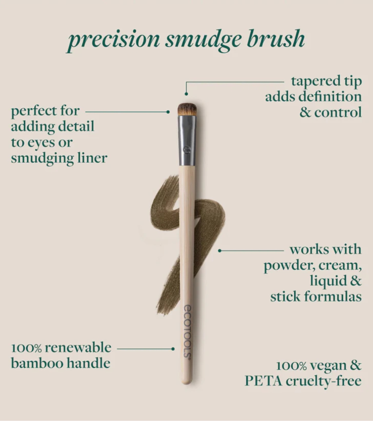 La brocha Precision Detail Brush de EcoTools está diseñada para aportar definición y precisión en los detalles del maquillaje de ojos.