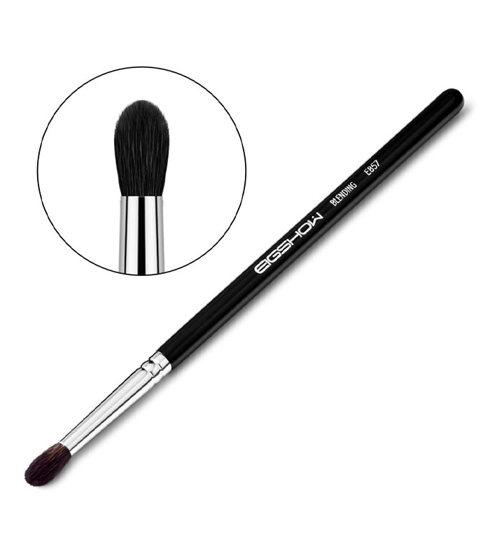 Las fibras de la brocha aplican de manera ultra precisa las sombras tanto en polvo como en crema, y la punta redondeada y las cerdas densas permiten difuminar de forma controlada en el pliegue del párpado.
