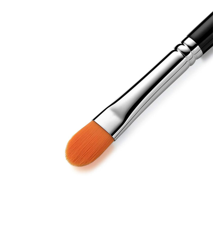 Una brocha plana con cerdas suaves sintéticas de fibra DuPont para aplicar y difuminar sombras de ojos.
