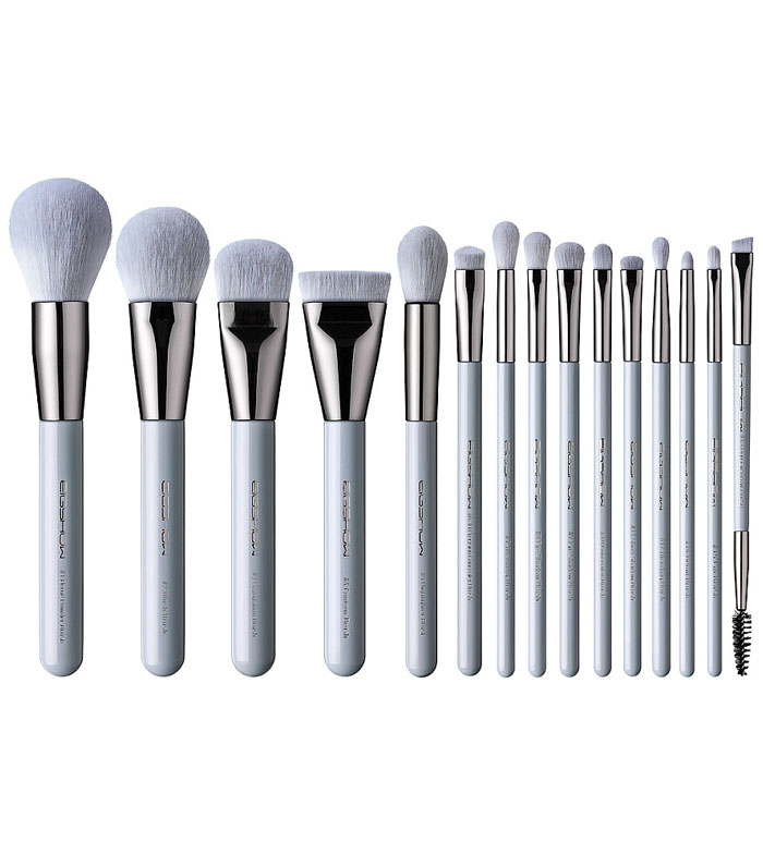 Un set con un elegante diseño azul grisáceo, con el que tendrás todo lo que necesitas para una aplciación perfecta del maquillaje.