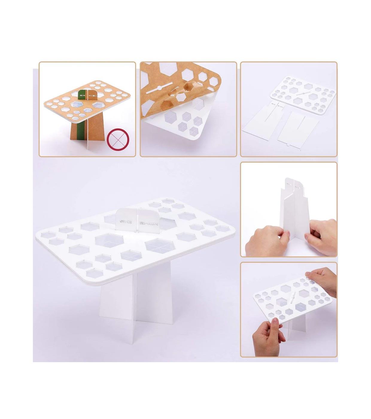 El portacepillos desmontable se monta fácilmente: tiene 4 orificios grandes, 6 medianos y 16 pequeños para adaptarse a diferentes tamaños de pinceles.