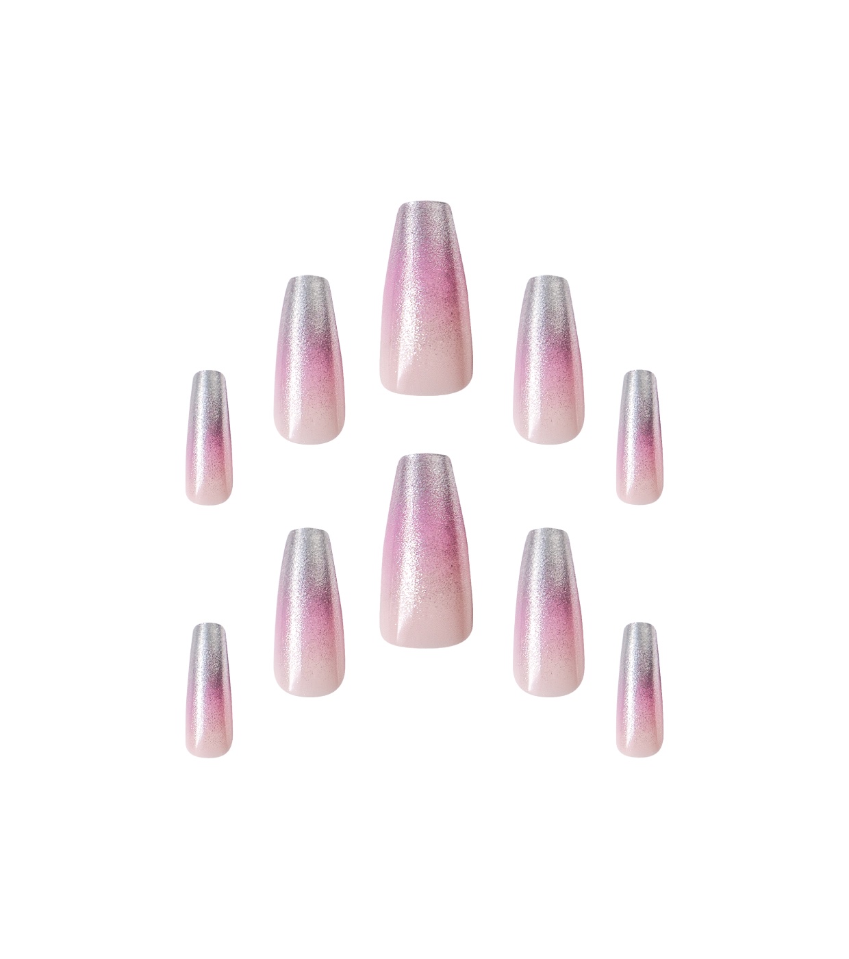 Con un precioso degradado de purpurina cromada plateada sobre un lavado de lila, esta manicura multitono da un aire futurista listo para la temporada de festivales.