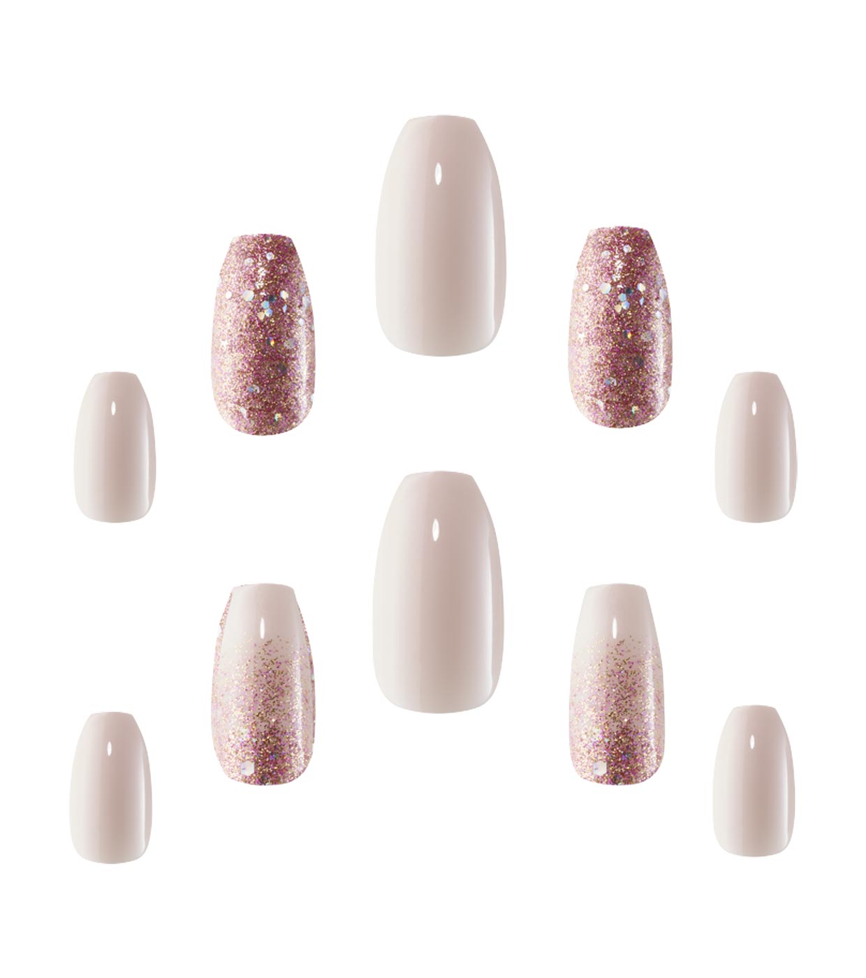Incluye 24 uñas de diferentes tamaños para que se ajusten a la perfección al tamaño de tu uña natural.