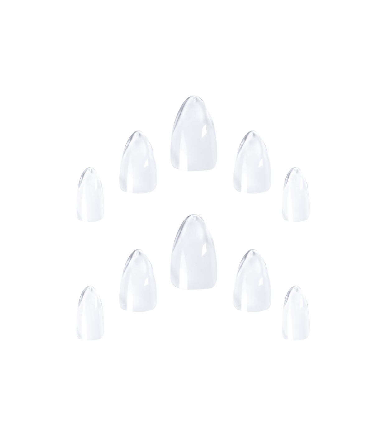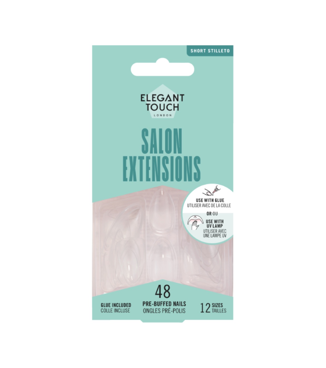Tanto si prefieres la flexibilidad de la aplicación de gel con una lámpara de polimerización como la sencillez del pegamento, Salon Extensions te ofrece esta forma de short stilleto súper chic.