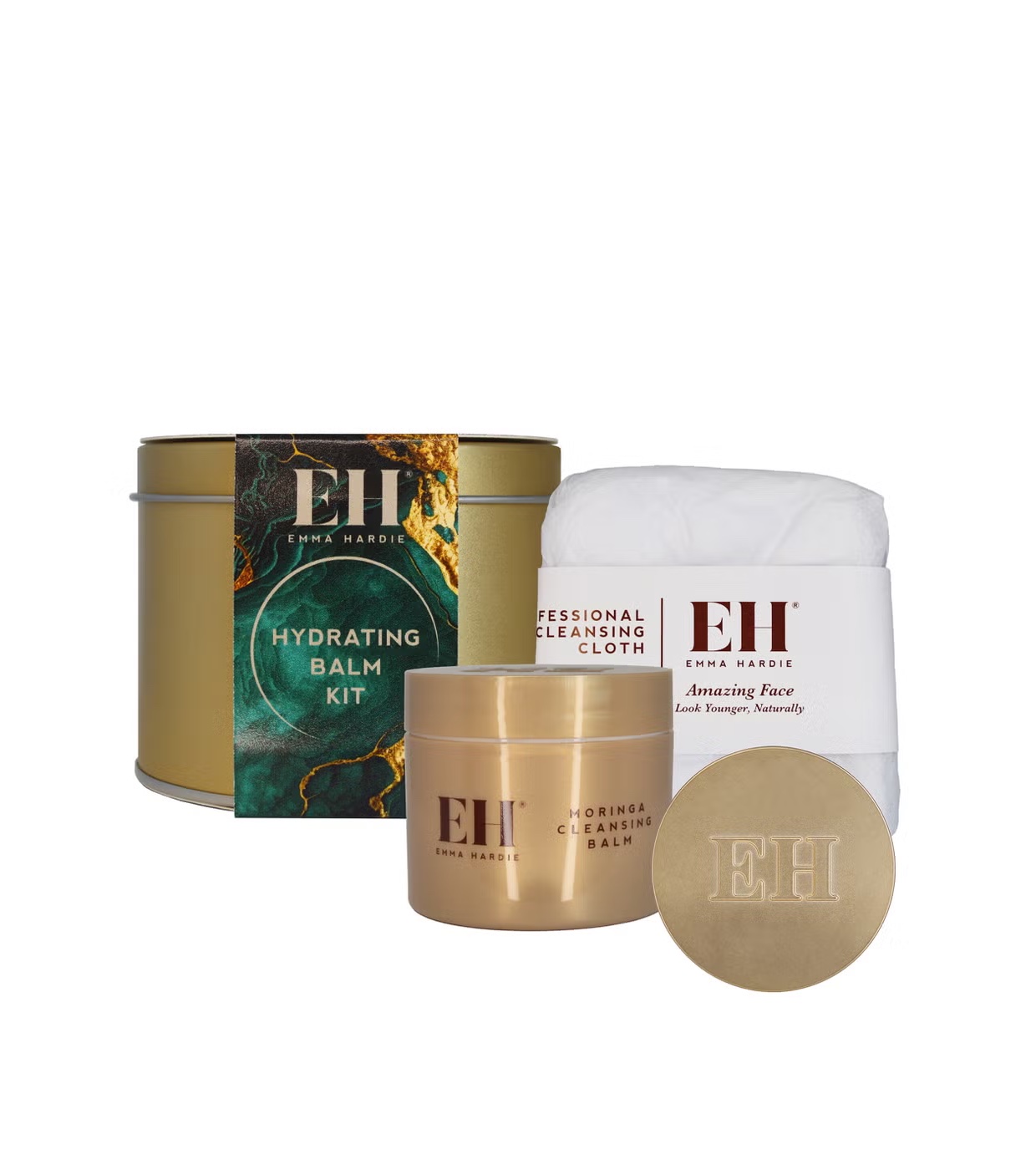 Kit facial de limpieza Hydrating Balm de Emma Hardie, es la combinación perfecta de productos nutritivos para la piel seca, pensados para mejorar tu rutina diaria y darle un toque de hidratación profunda.