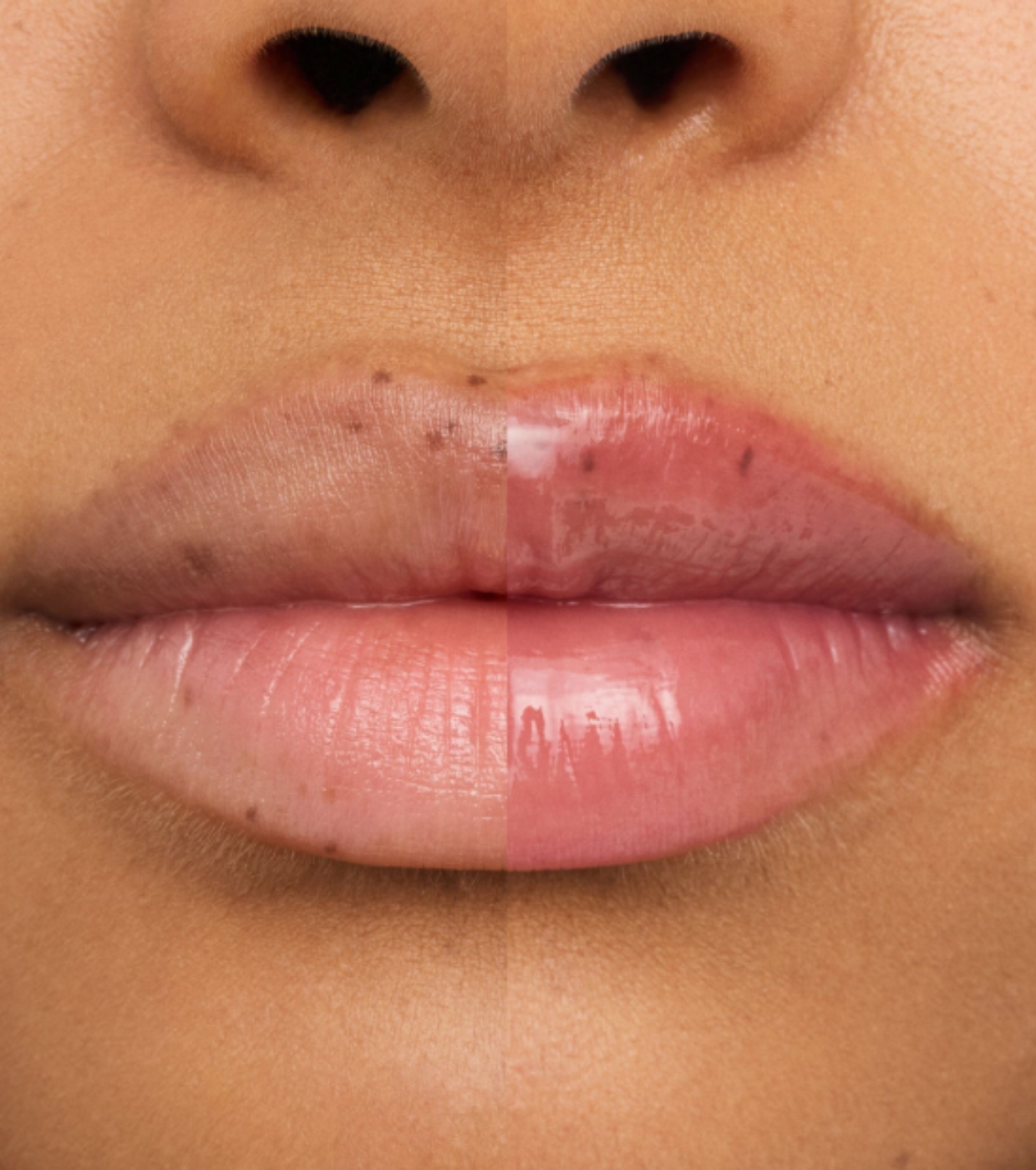 El tratamiento para labios tiene una textura lechosa y brillante, y está enriquecido con ingredientes nutritivos como péptidos, manteca de karité y vitamina E.
