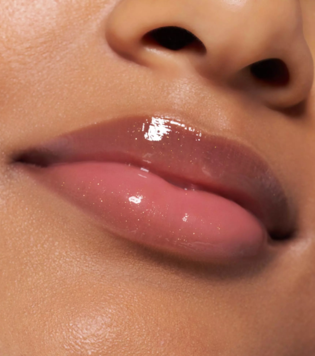 Su cálido tono marrón con destellos dorados envuelve los labios en un brillo luminoso y favorecedor, realzando el tono natural con un acabado jugoso y elegante.