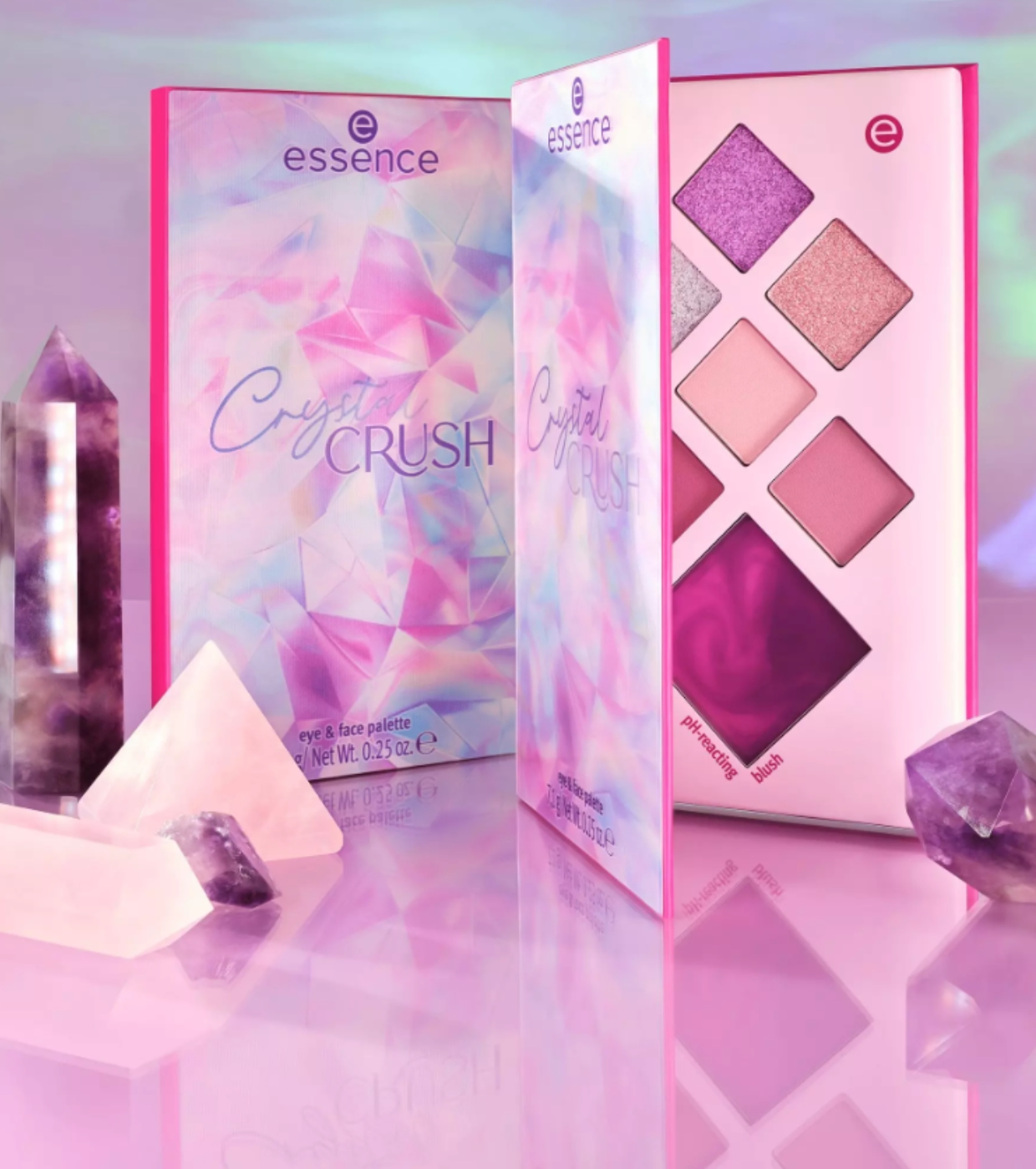 Ilumina tu rutina de maquillaje con el poder de los cristales y descubre la paleta de ojos y rostro CRYSTAL CRUSH de essence.