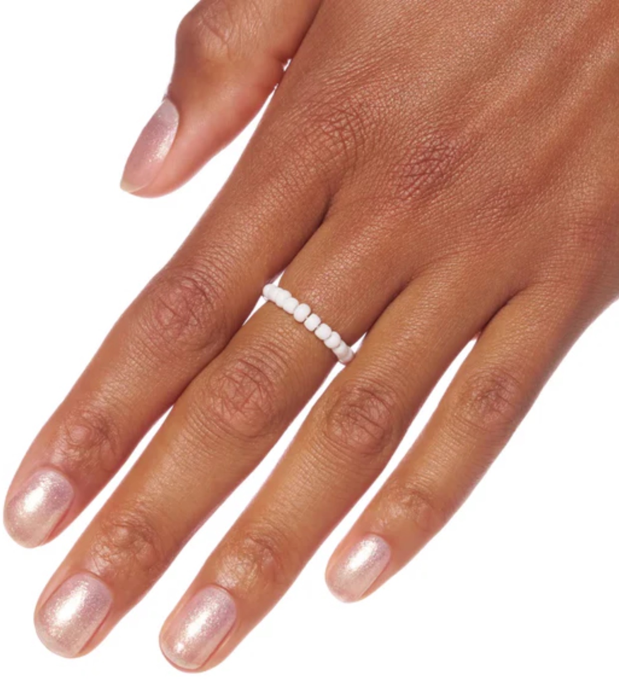 Este esmalte en un tono rosa lila con escamas doradas brillantes es tu billete para el glamur suave y el look “clean girl” de tendencia.