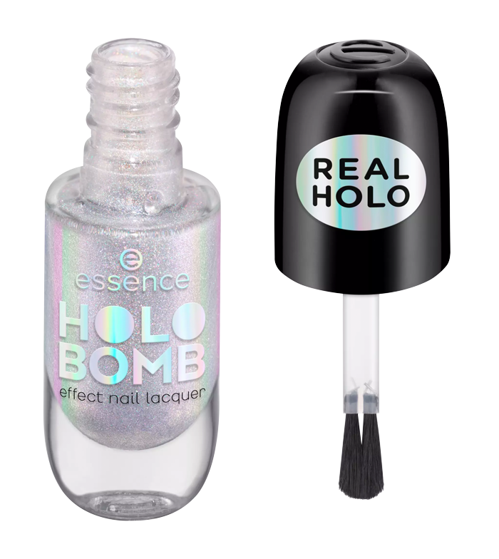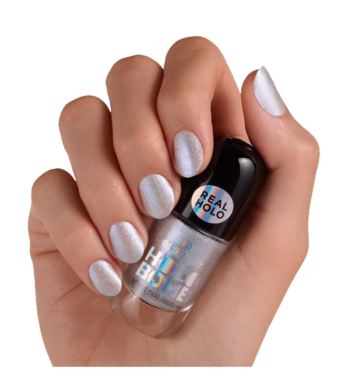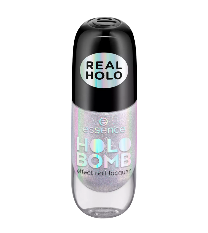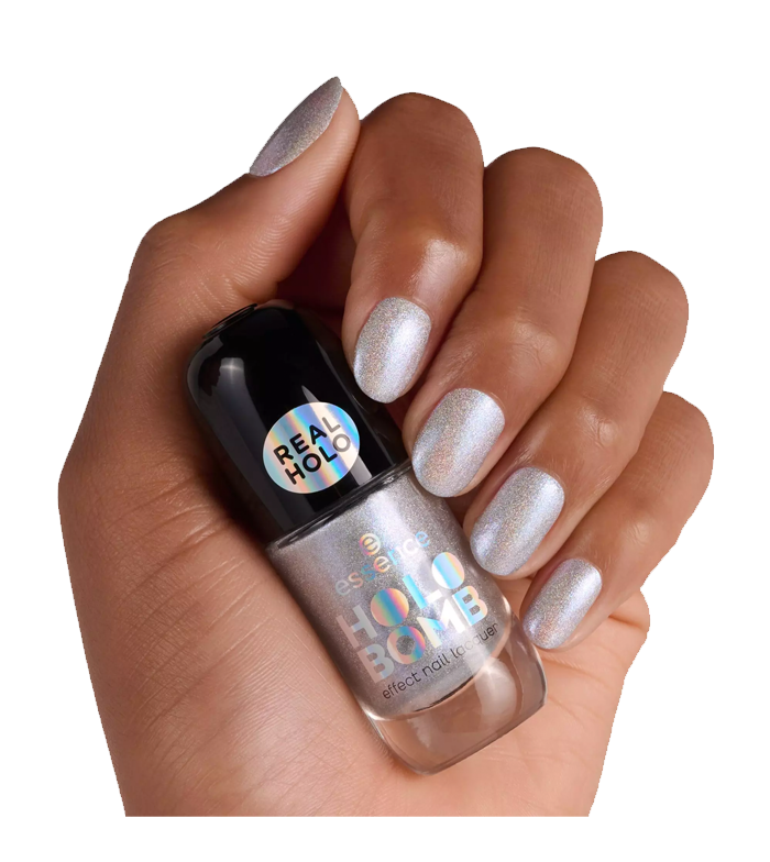 El esmalte Holo Bomb Effect de essence está disponible en diferentes tonos, todos ellos holográficos, para que encuentres el ideal para tu estilo.