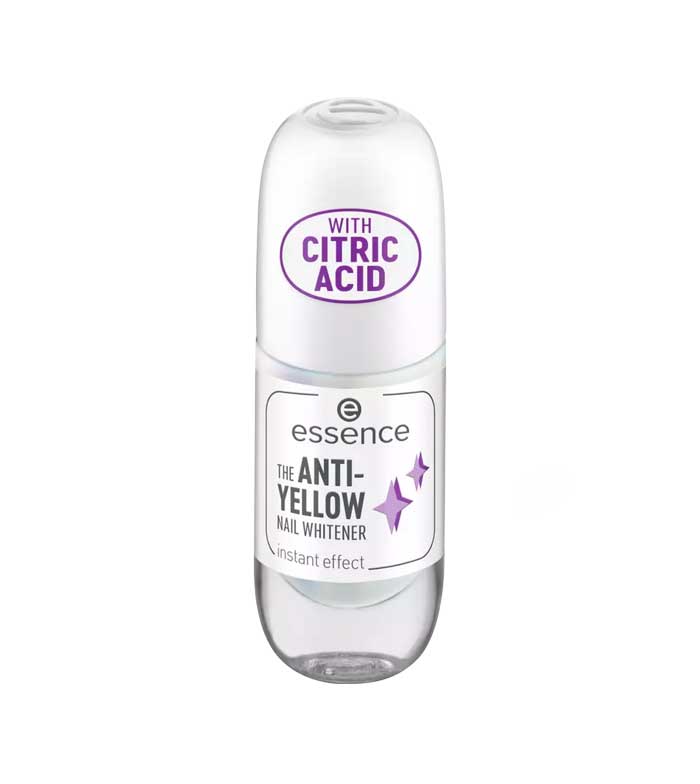 Su textura lechosa del esmalte de uñas contiene ácido cítrico y pigmentos azules, para un efecto blanqueante antiamarilleamiento.