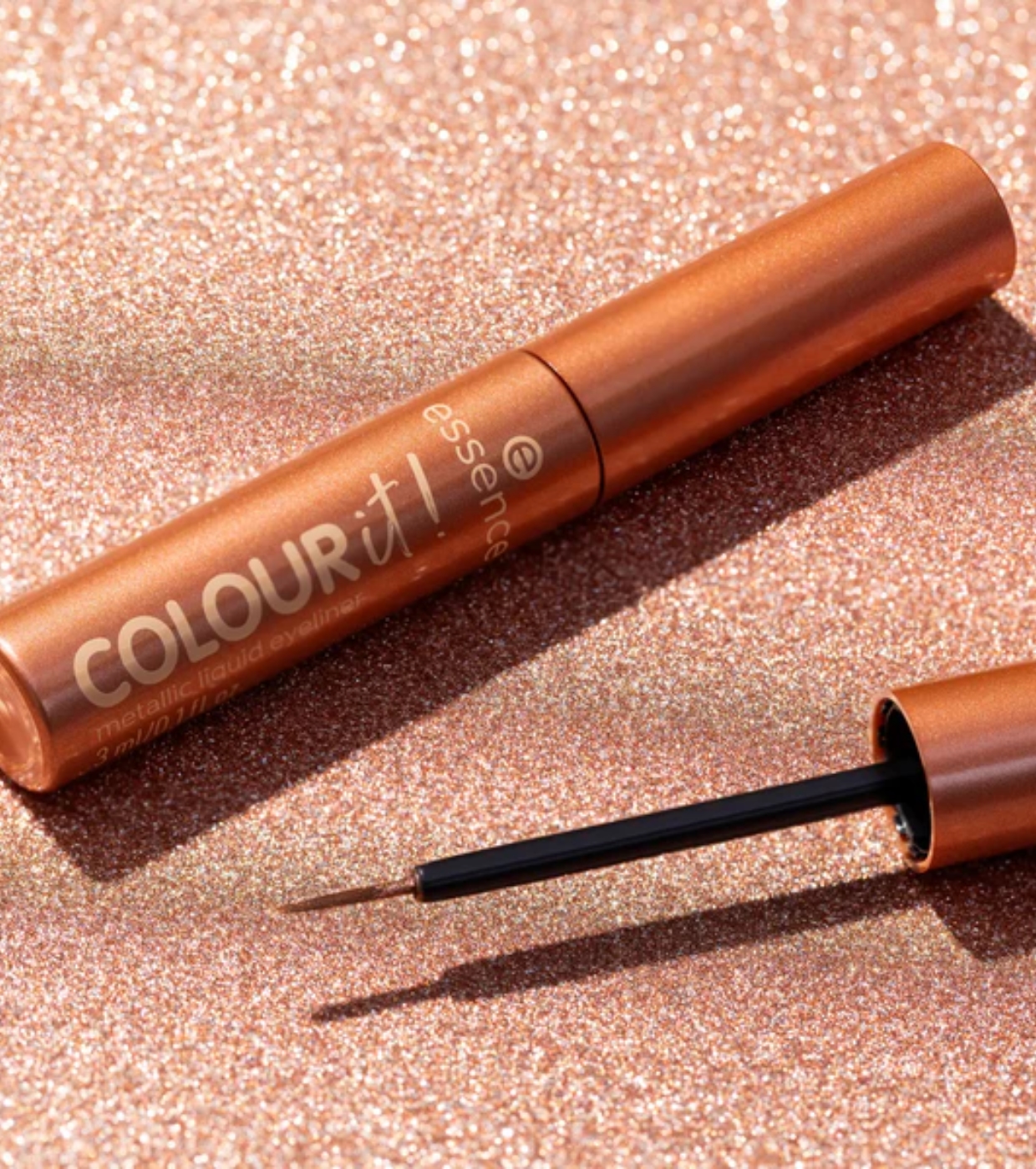 El Eyeliner metálico COLOUR it! de essence combina pigmentación intensa, textura fluida y un acabado metálico luminoso que resalta los ojos al instante.