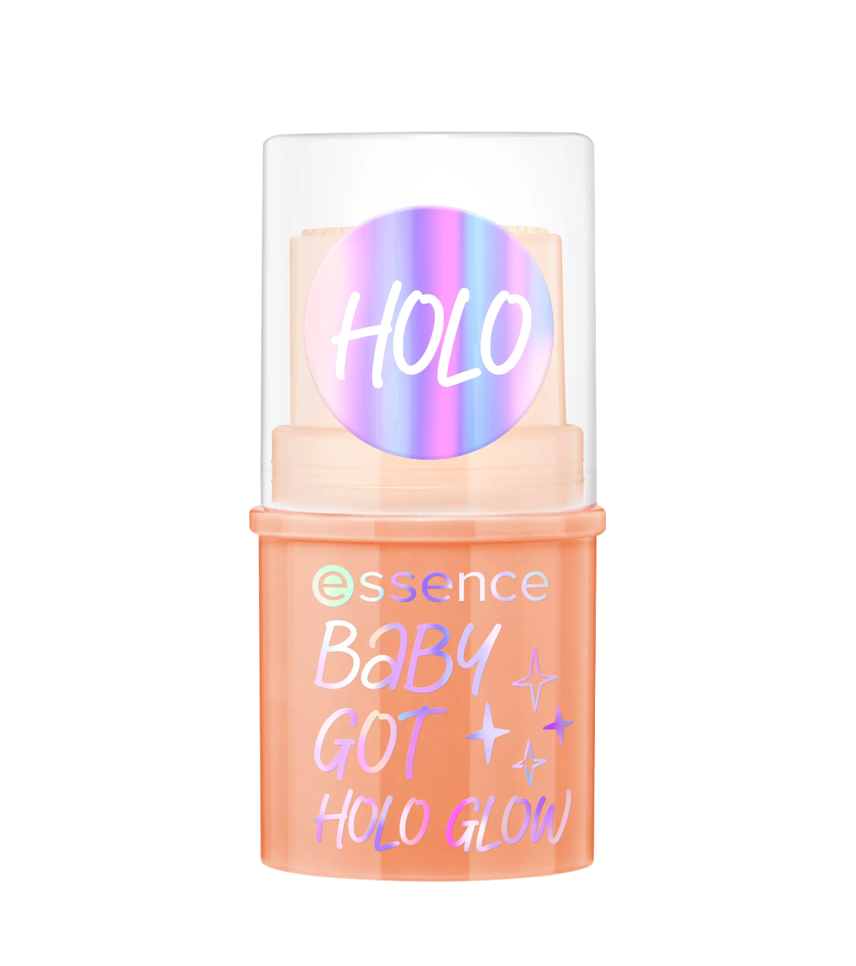 Este iluminador holográfico único con un toque de color melocotón cálido se puede utilizar como sombra de ojos, iluminador o iluminador corporal.