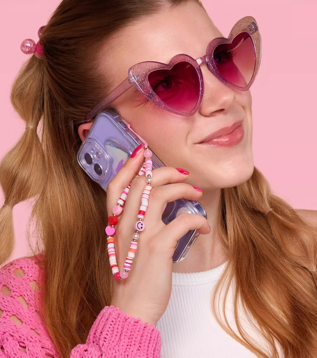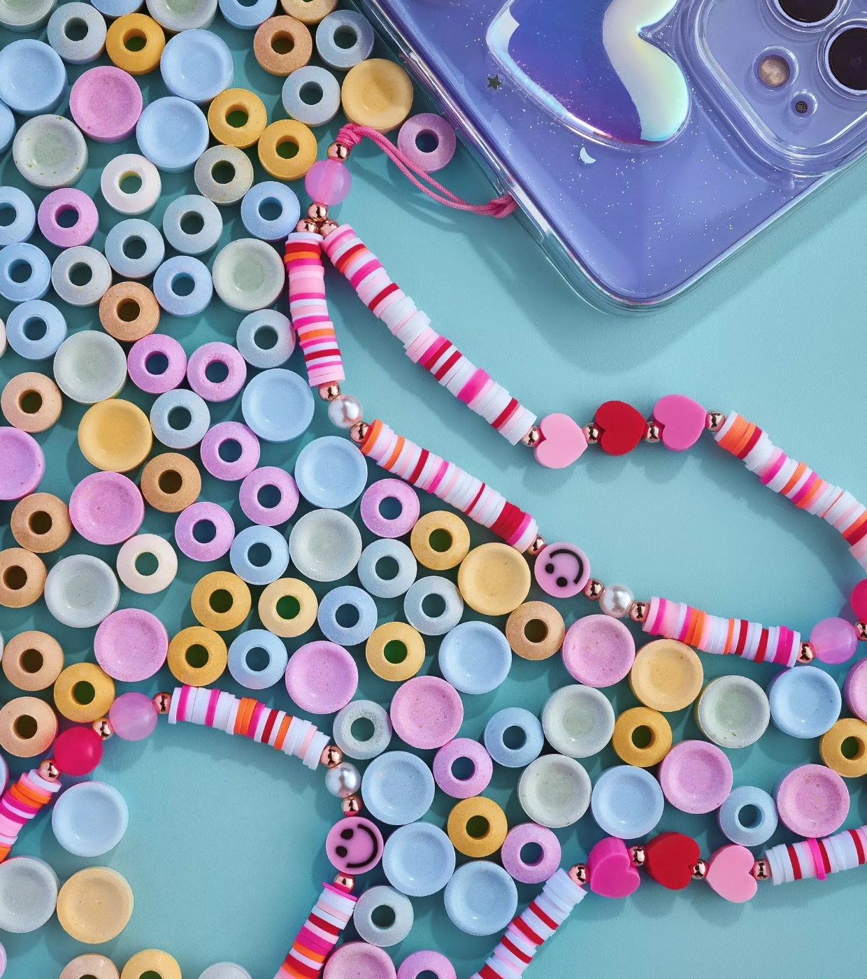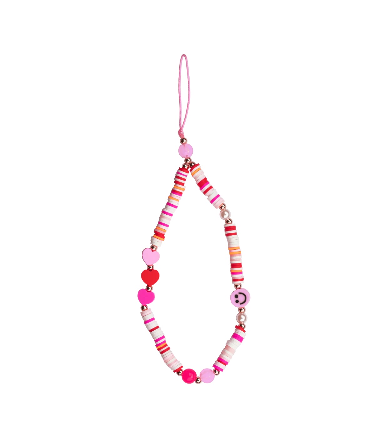 Este colgante para teléfono móvil es un accesorio muy mono con cuentas, smileys y corazones.