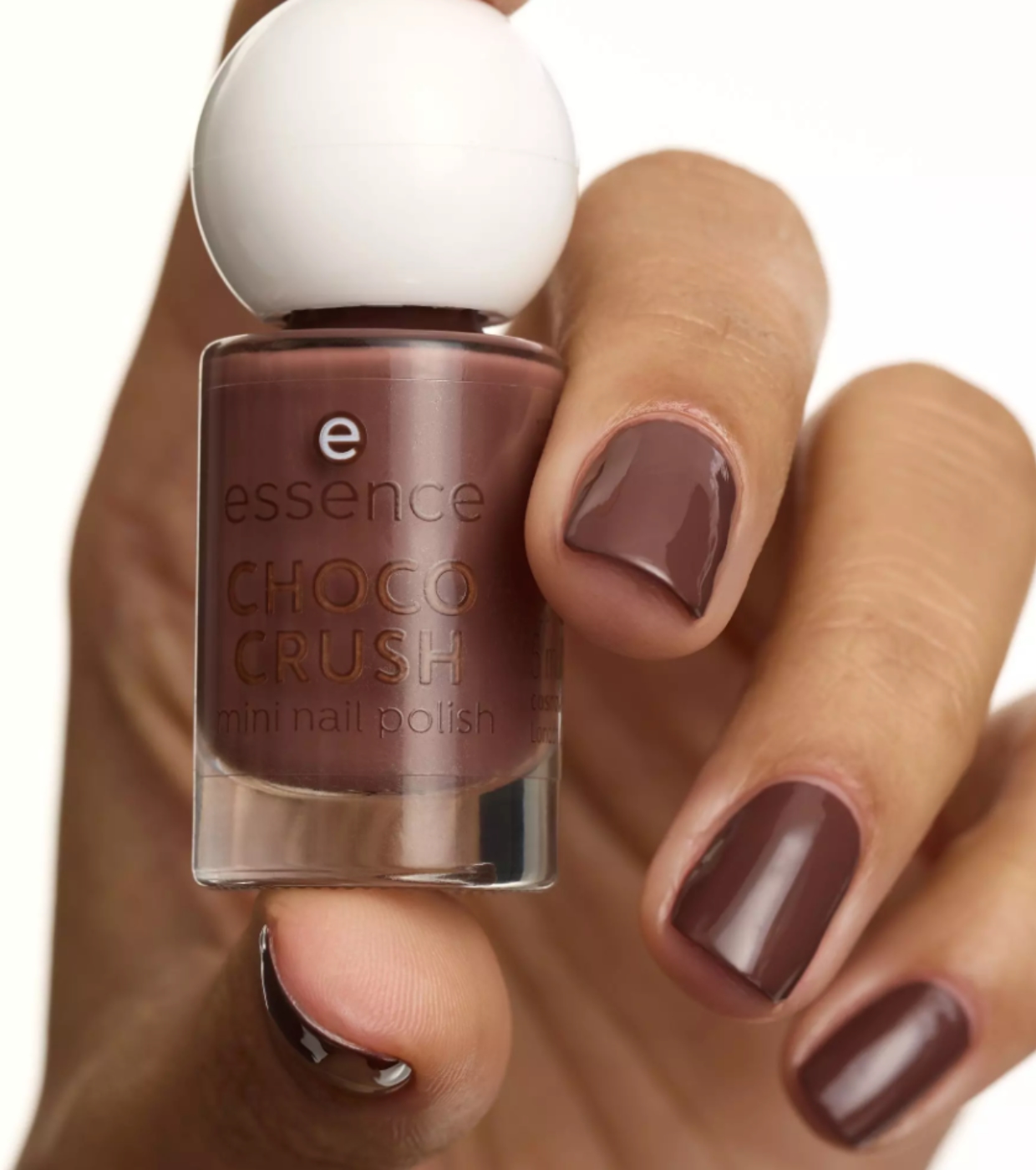 El mini esmalte de uñas Choco Crush 17 de essence, un intenso tono marrón chocolate que transforma tus uñas en toda una tentación beauty.
