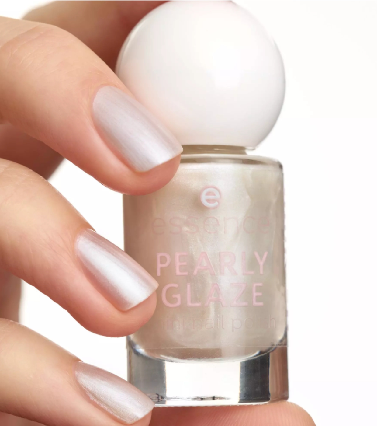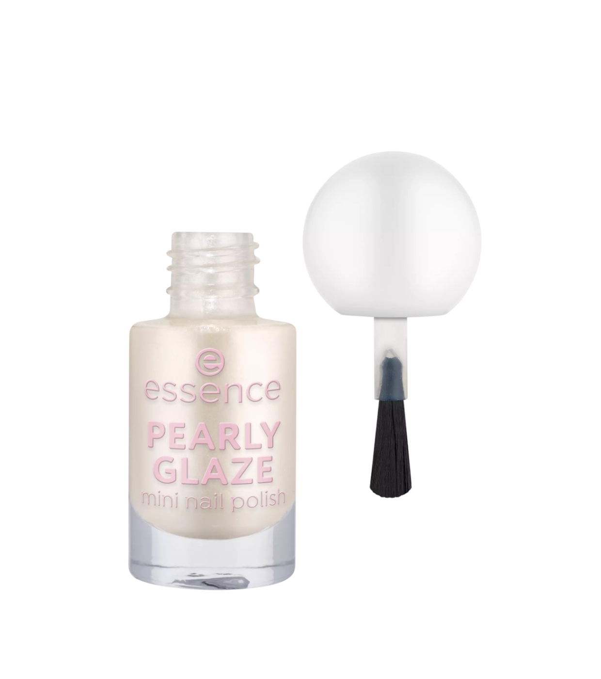 El mini esmalte de uñas Pearly Glaze 16 de essence es un tono blanco translúcido efecto perla está enriquecido con partículas ultrafinas de brillo cristalino que reflejan la luz y aportan un acabado luminoso y elegante.