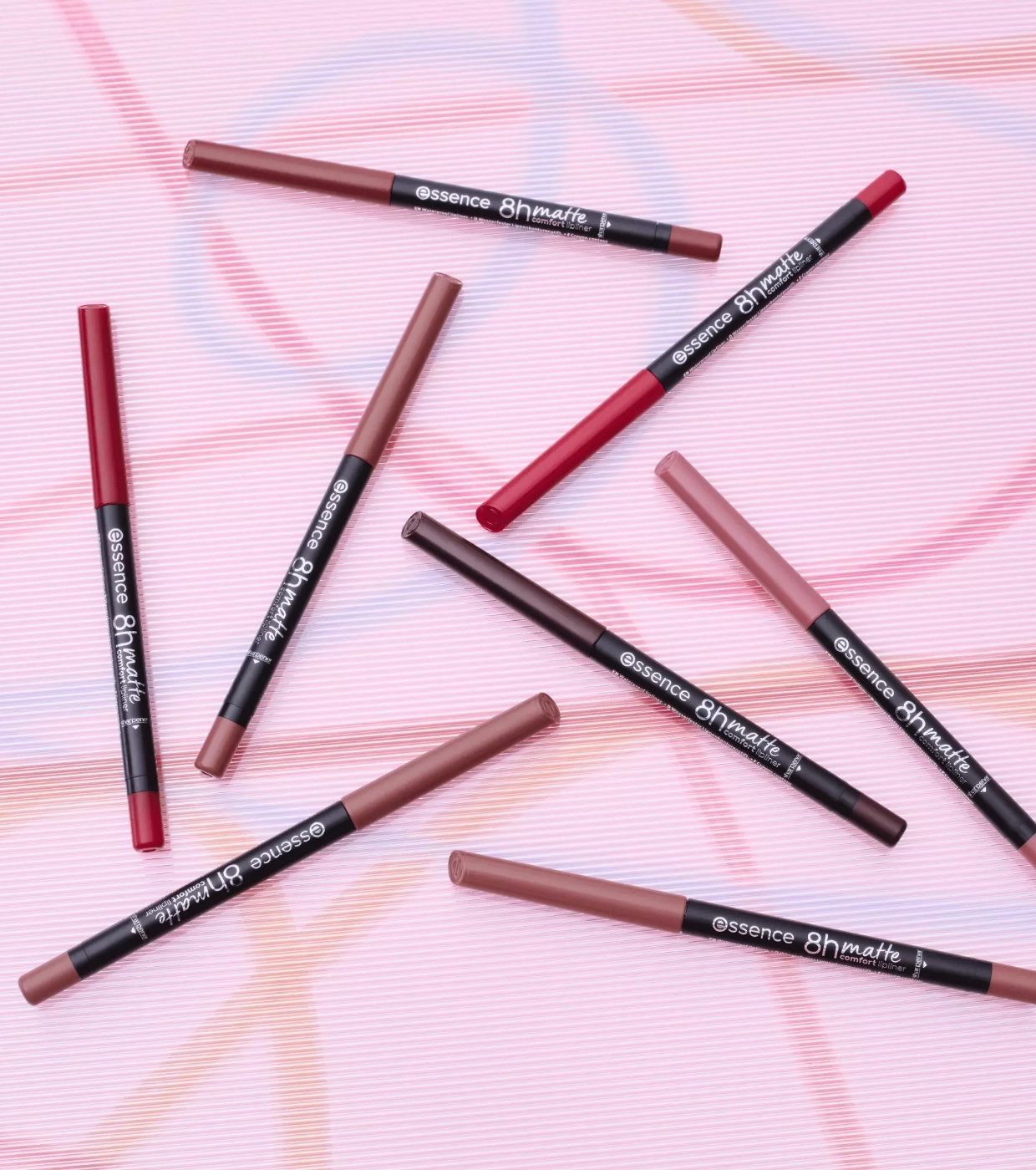 El perfilador 8h Matte confort de essence está disponible en diferentes tonos para que lo combines con tu labial favorito.