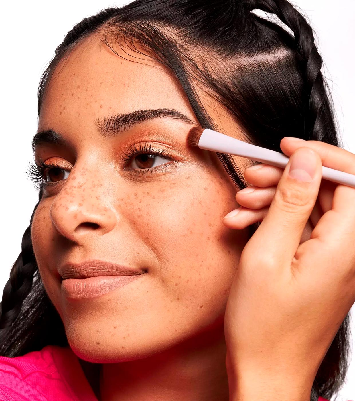 Gracias a las cerdas suaves del pincel para difuminar, puedes aplicar fácilmente las sombras de ojos en polvo.
