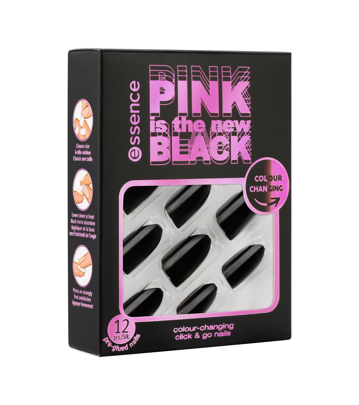 Uñas Click & Go que cambian de color PINK is the new BLACK de essence.