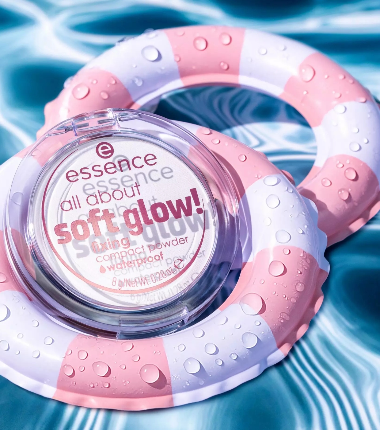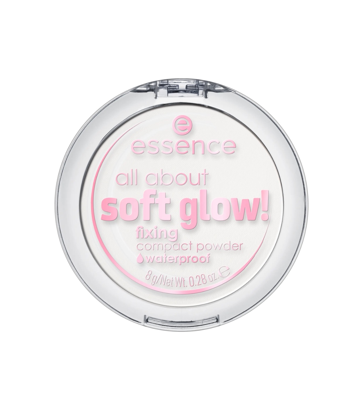 Consigue un acabado perfecto y luminoso con Polvos compacto fijadores resistente al agua All About Soft Glow! de essence.
