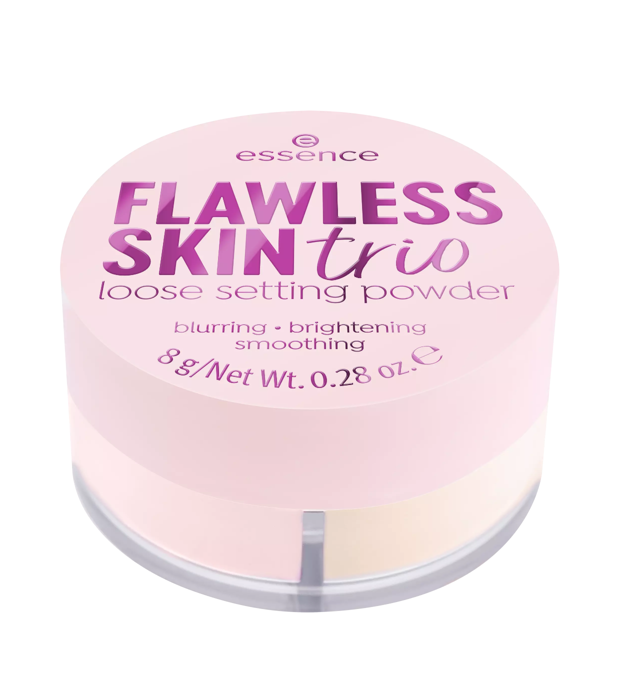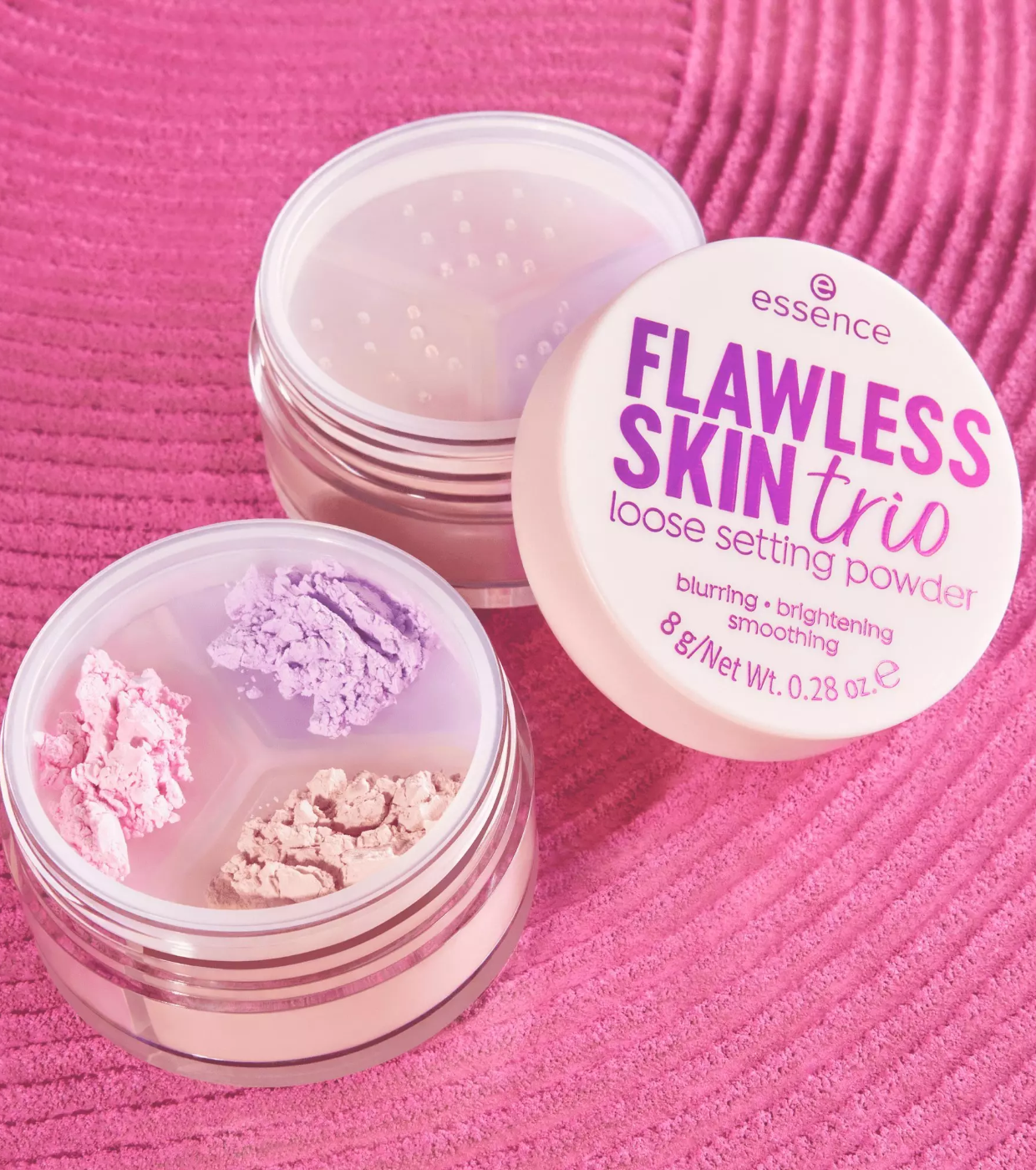 Mejora la duración de tu maquillaje con los polvos sueltos fijadores Flawless Skin de essence.