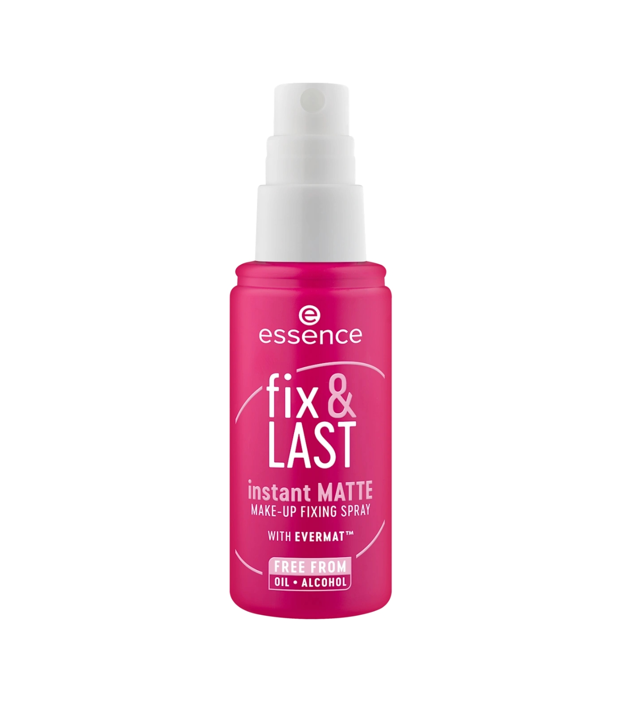 Perfecto para quienes buscan un look mate duradero, el Fix & Last Matte Setting Spray prolonga la duración del maquillaje y garantiza un acabado natural y sin brillos.