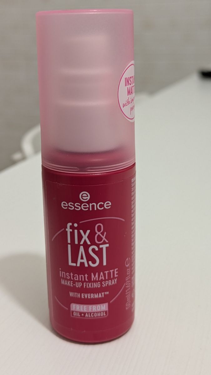 El spray fijador de maquillaje Mate Instantáneo Fix & Last de essence es el aliado perfecto para un acabado mate impecable y de larga duración.